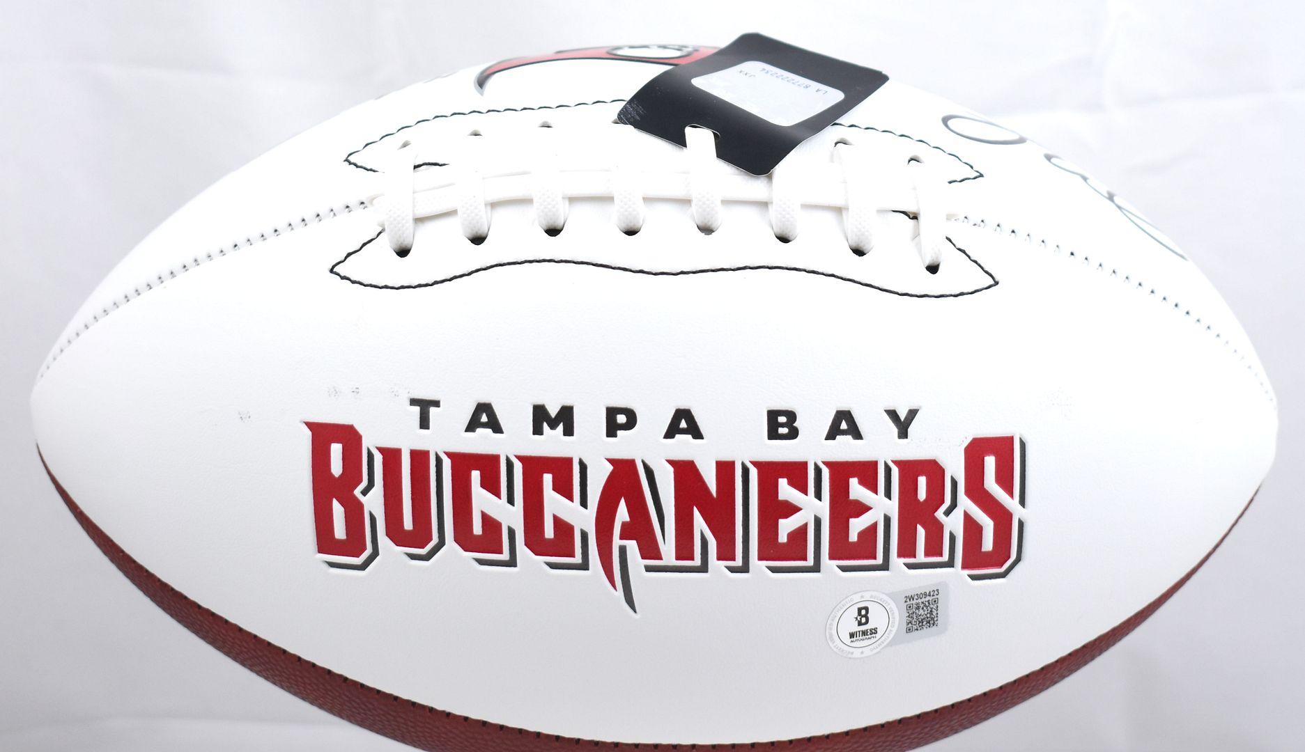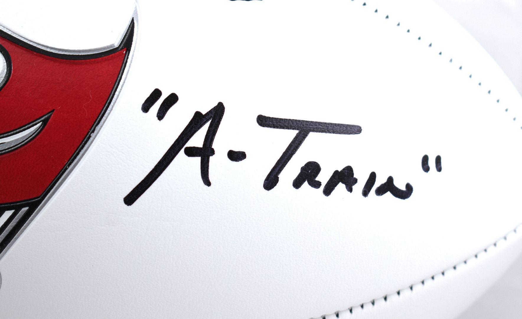 Tampa Bay Buccaneers logo football has been hand-signed and inscribed by Mike Alstott.