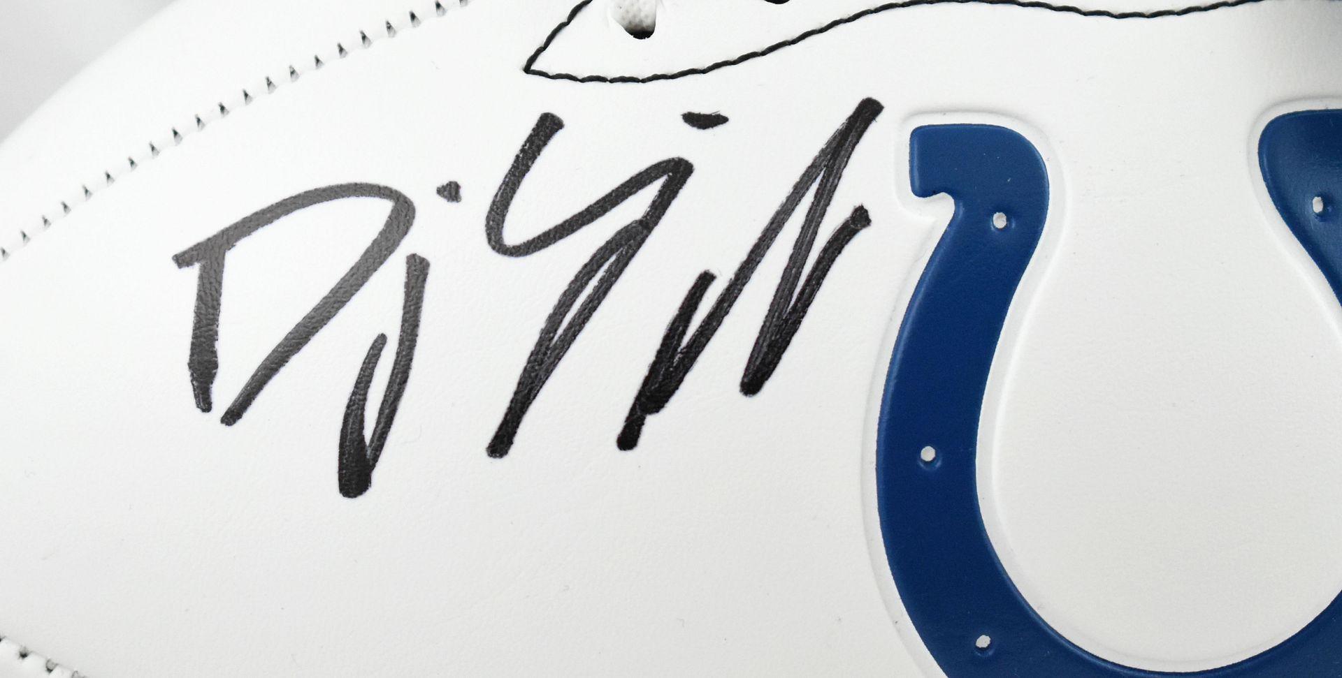 Indianapolis Colts logo football has been hand-signed by DJ Giddens.