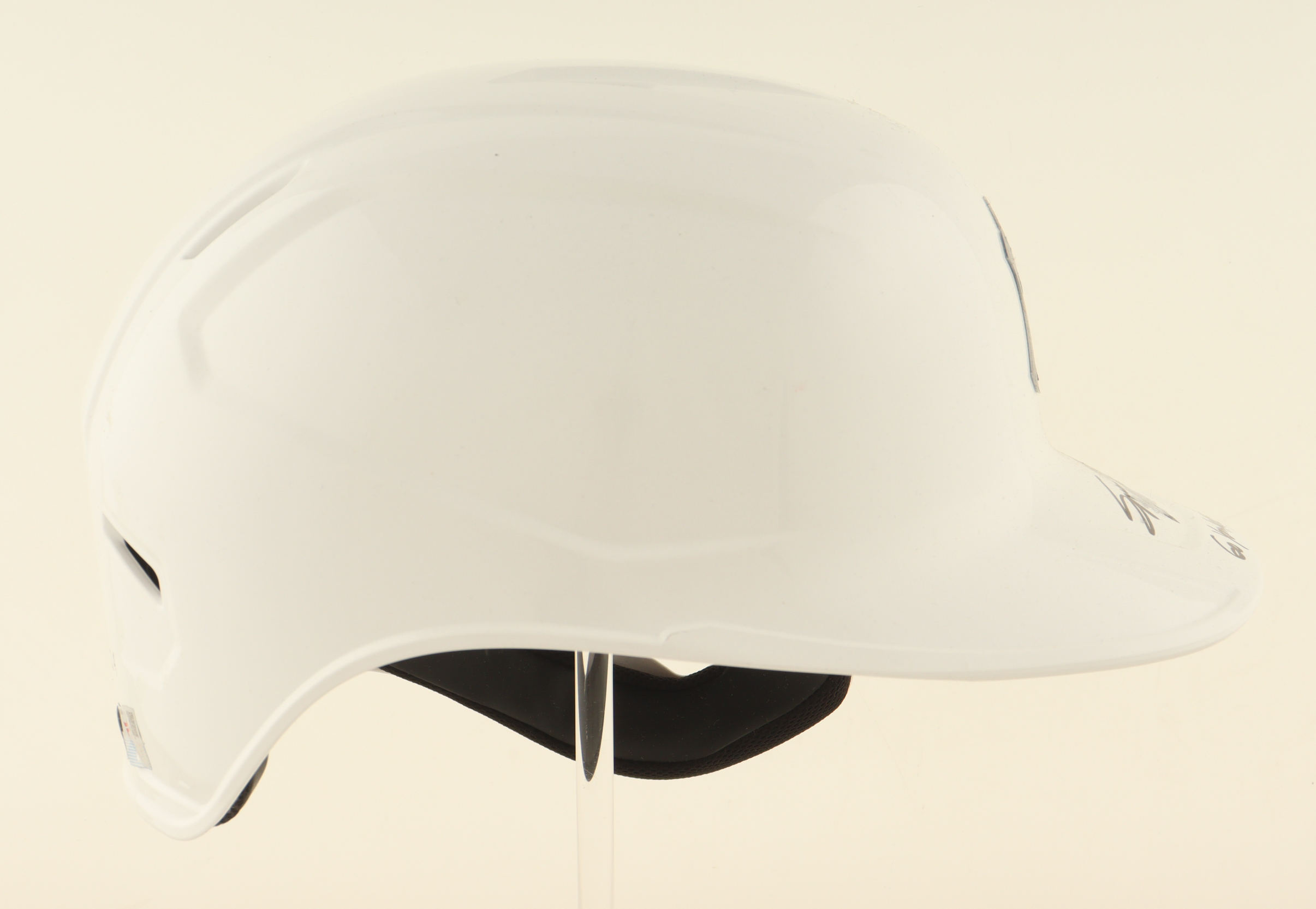 Rawlings New York Yankees Full-Size Replica Batting Helmet. Hand signed and inscribed by Spencer Jones. The helmet is limited edition and has been hand-numbered #12/24. Please note, the signature and inscription have been smudged.