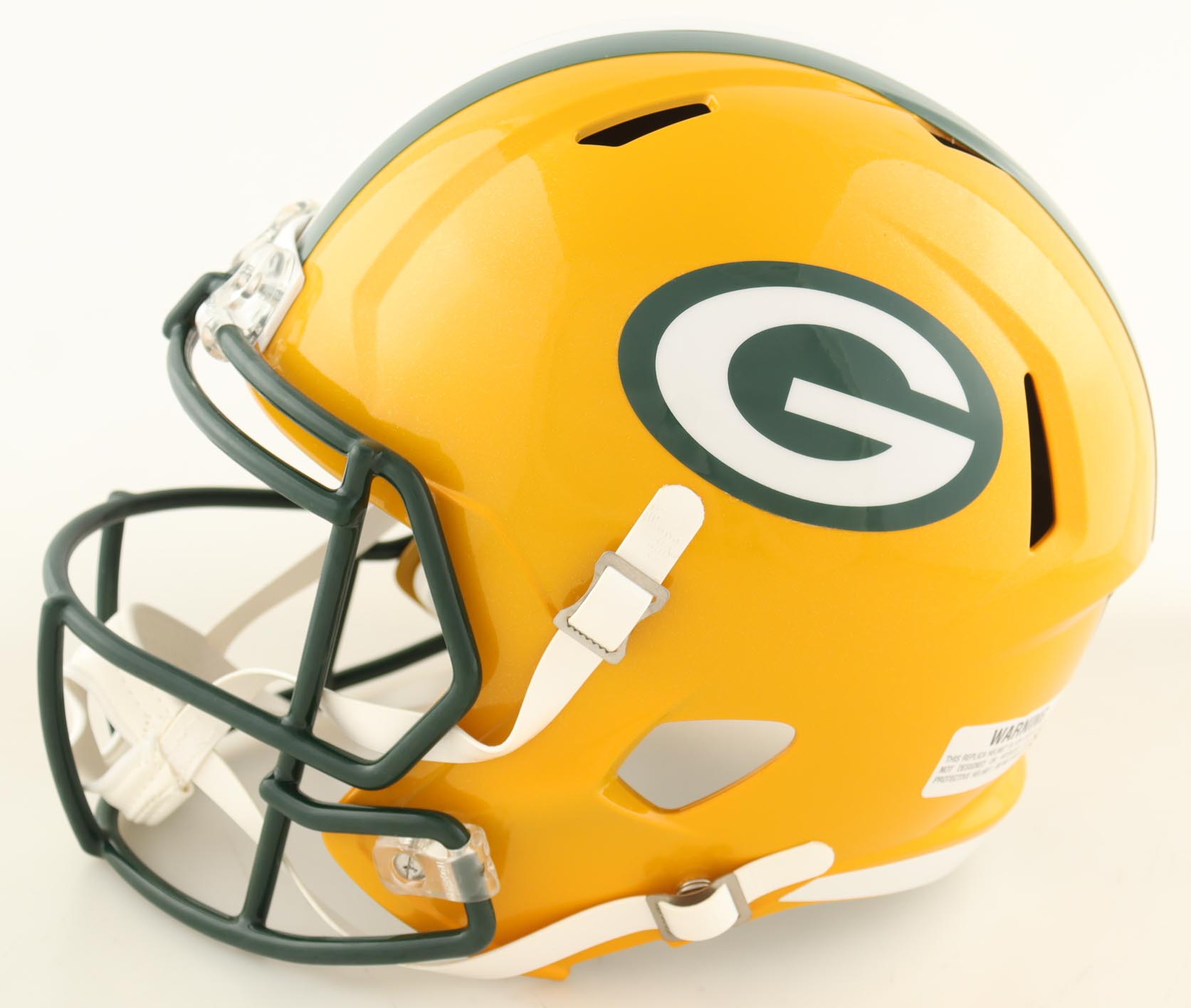 Riddell Green Bay Packers full-size replica Speed helmet. Hand-signed by Josh Jacobs.