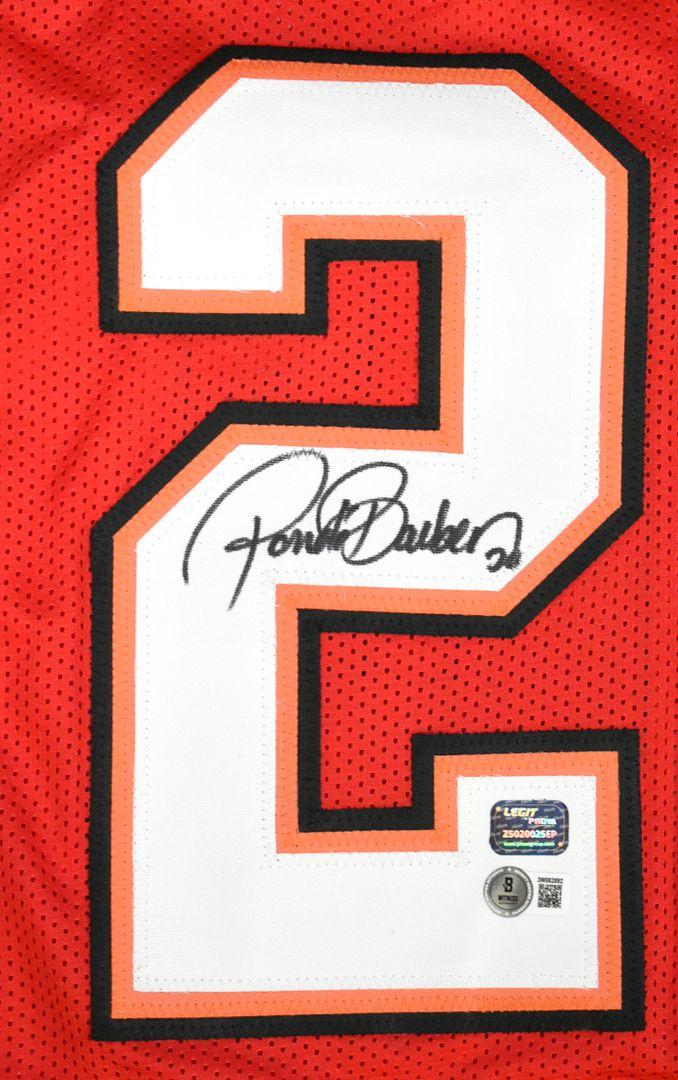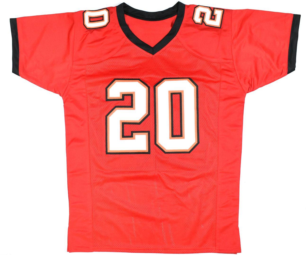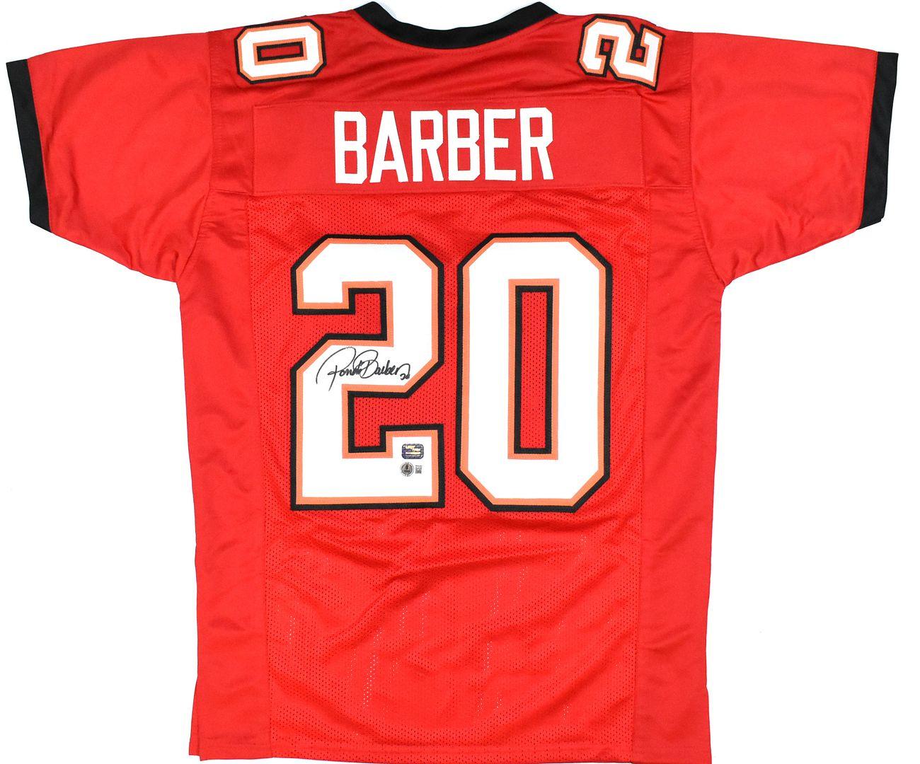 Custom jersey with everything sewn on, size XL. Hand-signed by Ronde Barber (HOF).