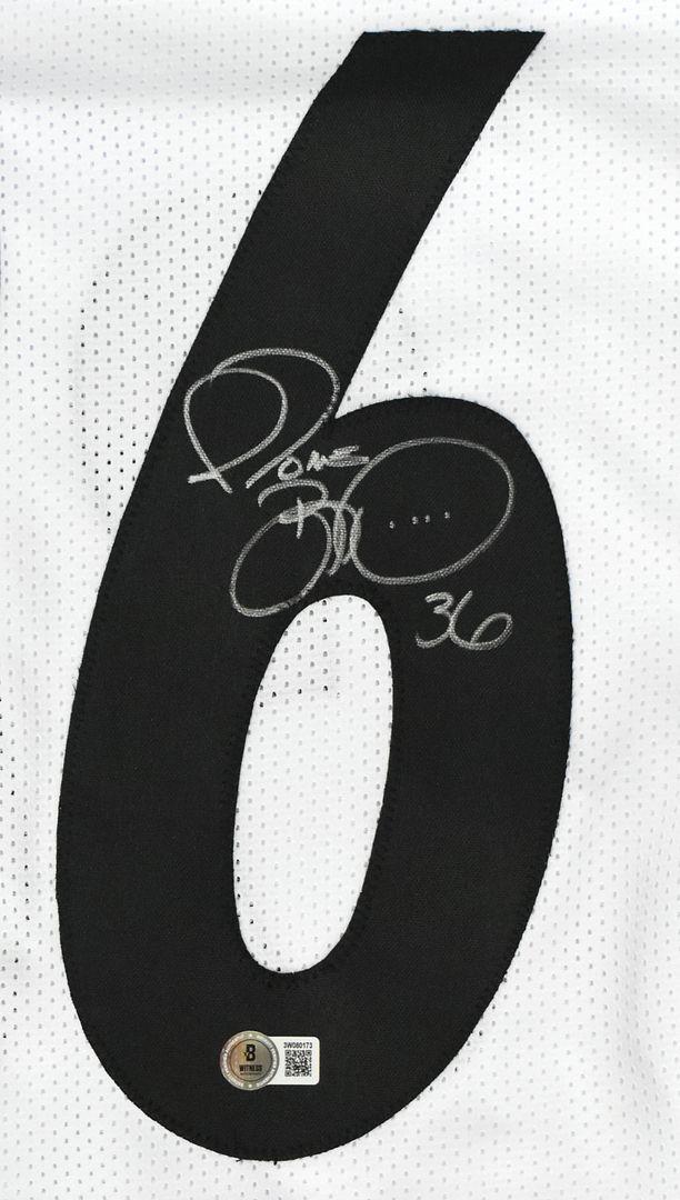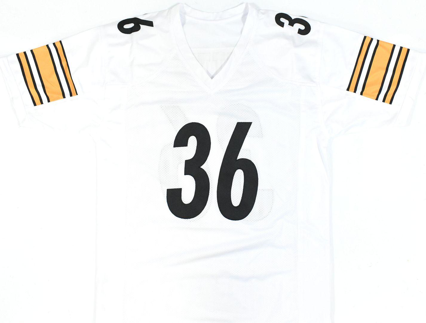 Custom jersey with everything sewn on, size XL. Hand-signed by Jerome Bettis (HOF).