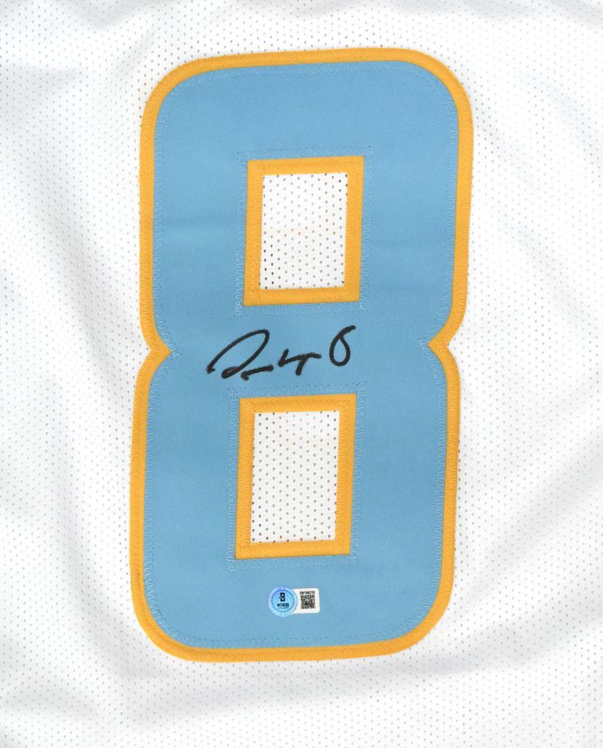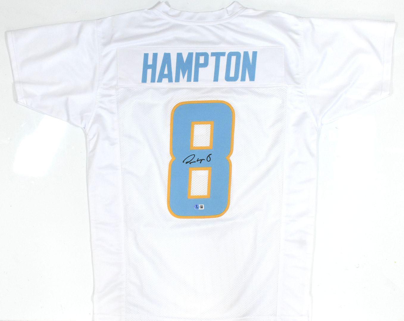 Custom jersey with everything sewn on, size XL. Hand-signed by Omarion Hampton.
