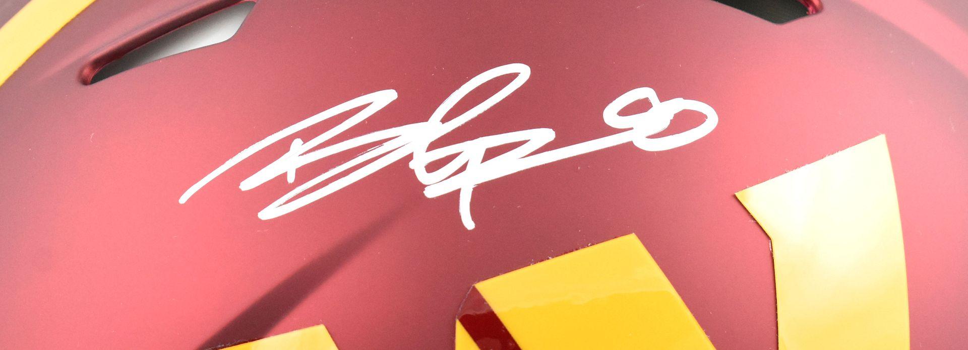 Riddell Washington Commanders full-size authentic on-field speed helmet has been hand-signed by Brian Robinson Jr.