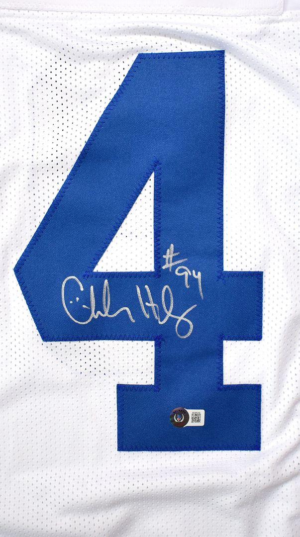 Custom jersey with everything sewn on, size XL. Hand-signed by Charles Haley (HOF).