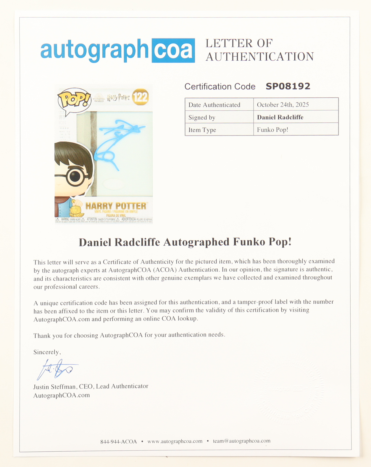 Daniel Radcliffe Signed "Harry Potter" #122 Wizarding World Funko Pop! Vinyl Figure (ACOA)
