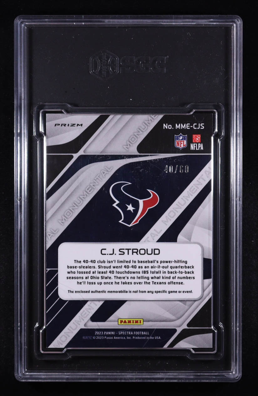 CJ Stroud 2023 Panini Spectra Monumental Memorabilia Hyper #2 #40/60 RC (SGC 9.5)