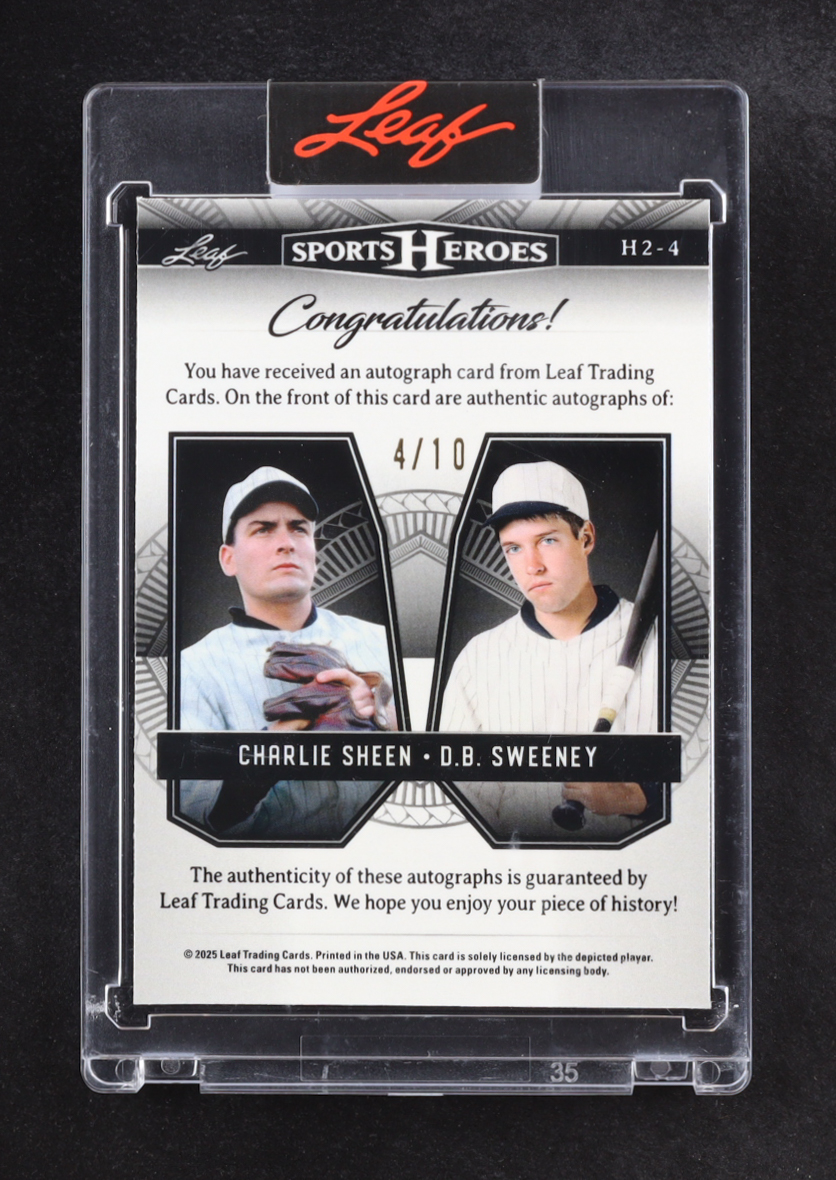 Charlie Sheen / D.B. Sweeney 2025 Leaf Sport Heroes Dual Purple Autographs #H2-4 #4/10