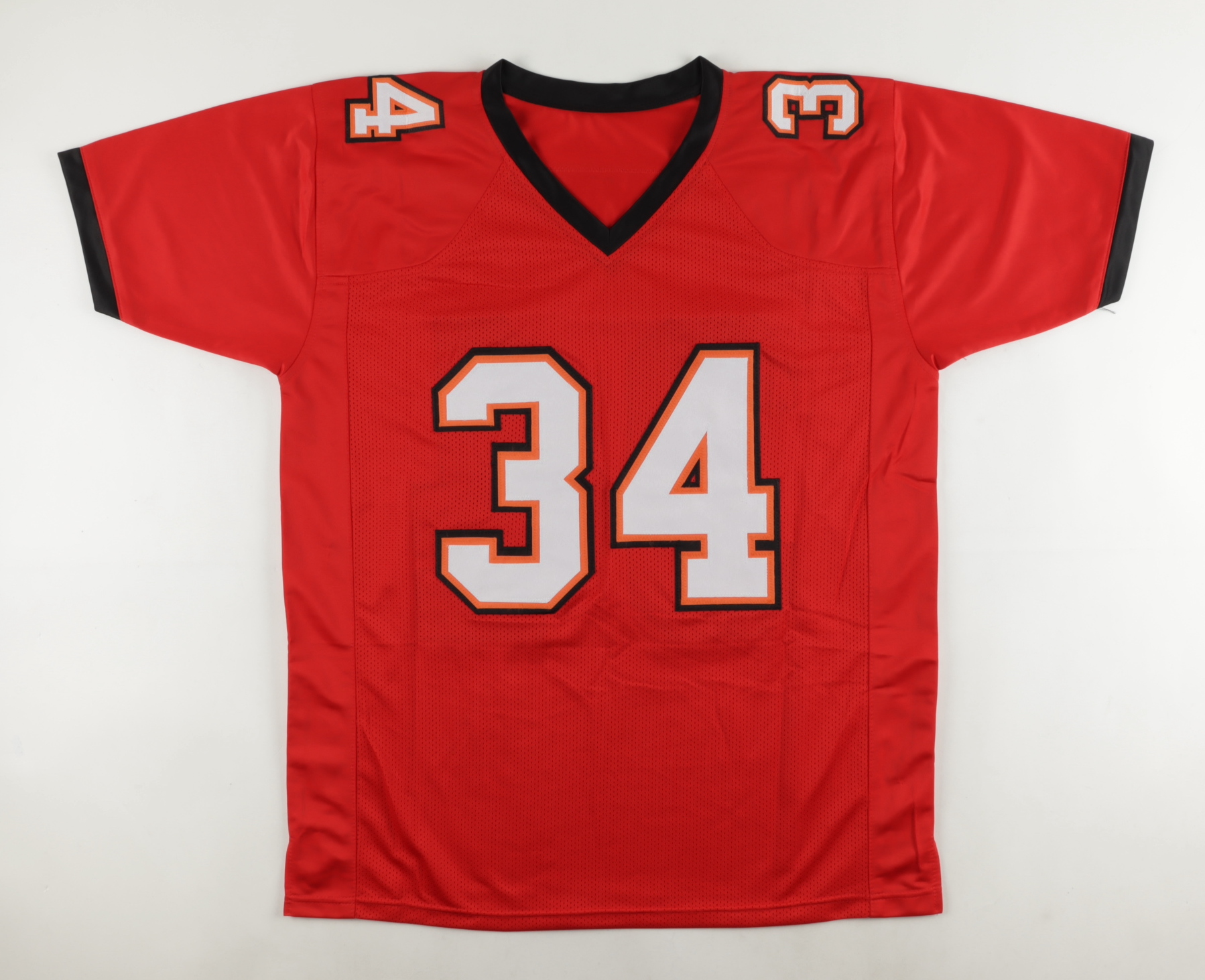 Custom jersey. Everything is sewn on, size XL. Hand-signed and inscribed by Dexter Jackson. Please note, the signature and inscription have bled.