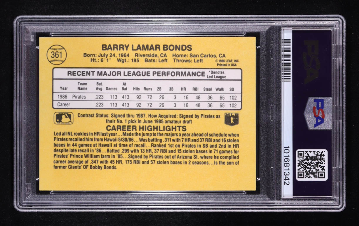 Barry Bonds 1987 Donruss #361 RC (PSA 9)