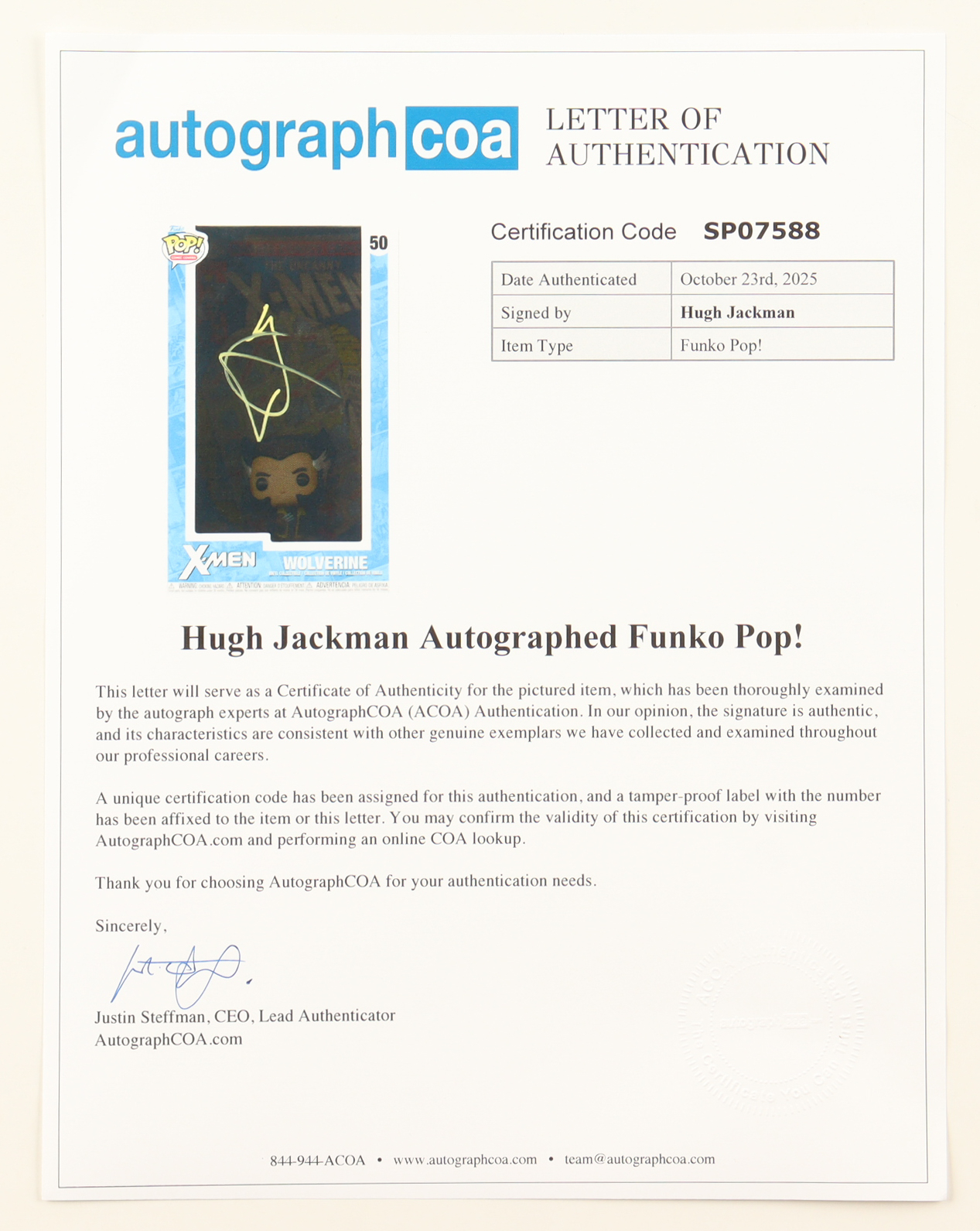 Hugh Jackman Signed "Marvel" #50 Wolverine Funko Pop! Bobble-Head Vinyl Figure (ACOA)
