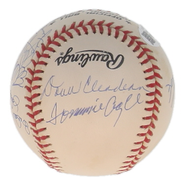 ONL Baseball Signed By (7) With Ed Charles, Tommie Agee, Donn Clendenon, Ron Swoboda (JSA)