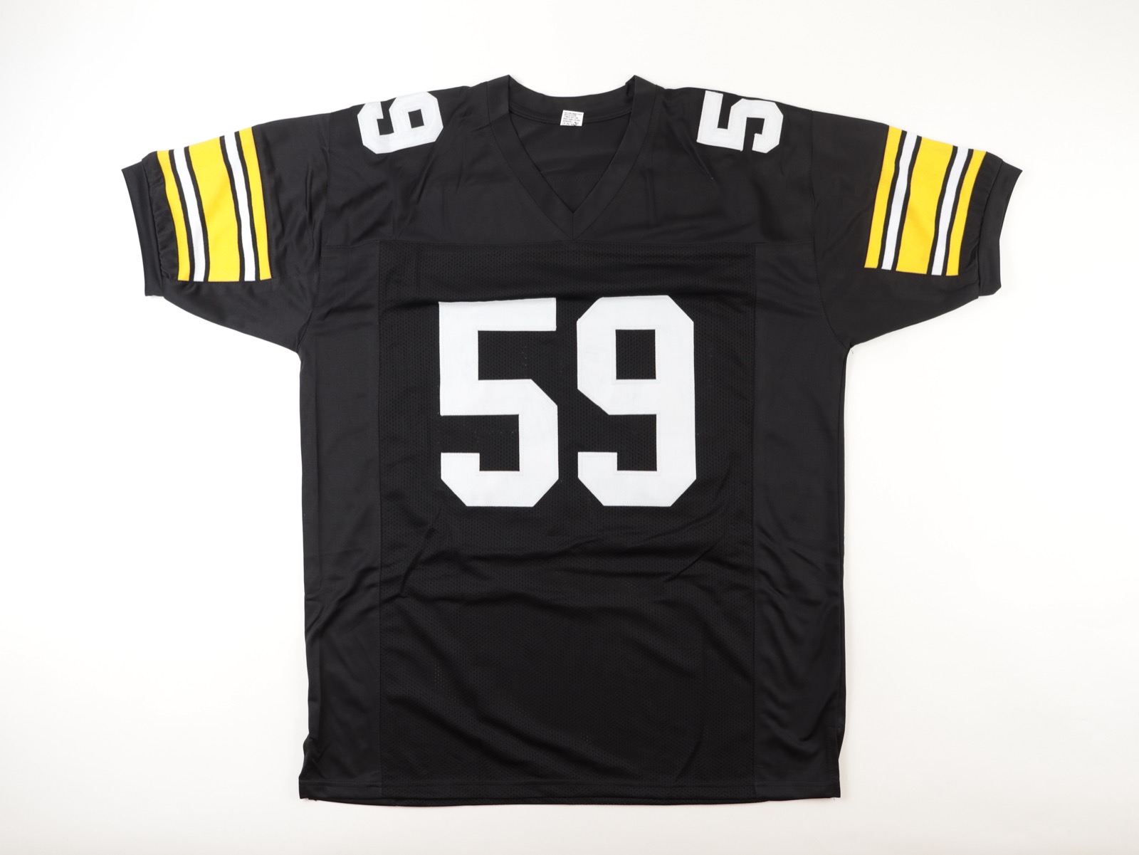 Custom jersey. Everything is sewn on, size XL. Hand-signed and inscribed by Jack Ham (HOF). Please note, glue is visible through the reverse number.
