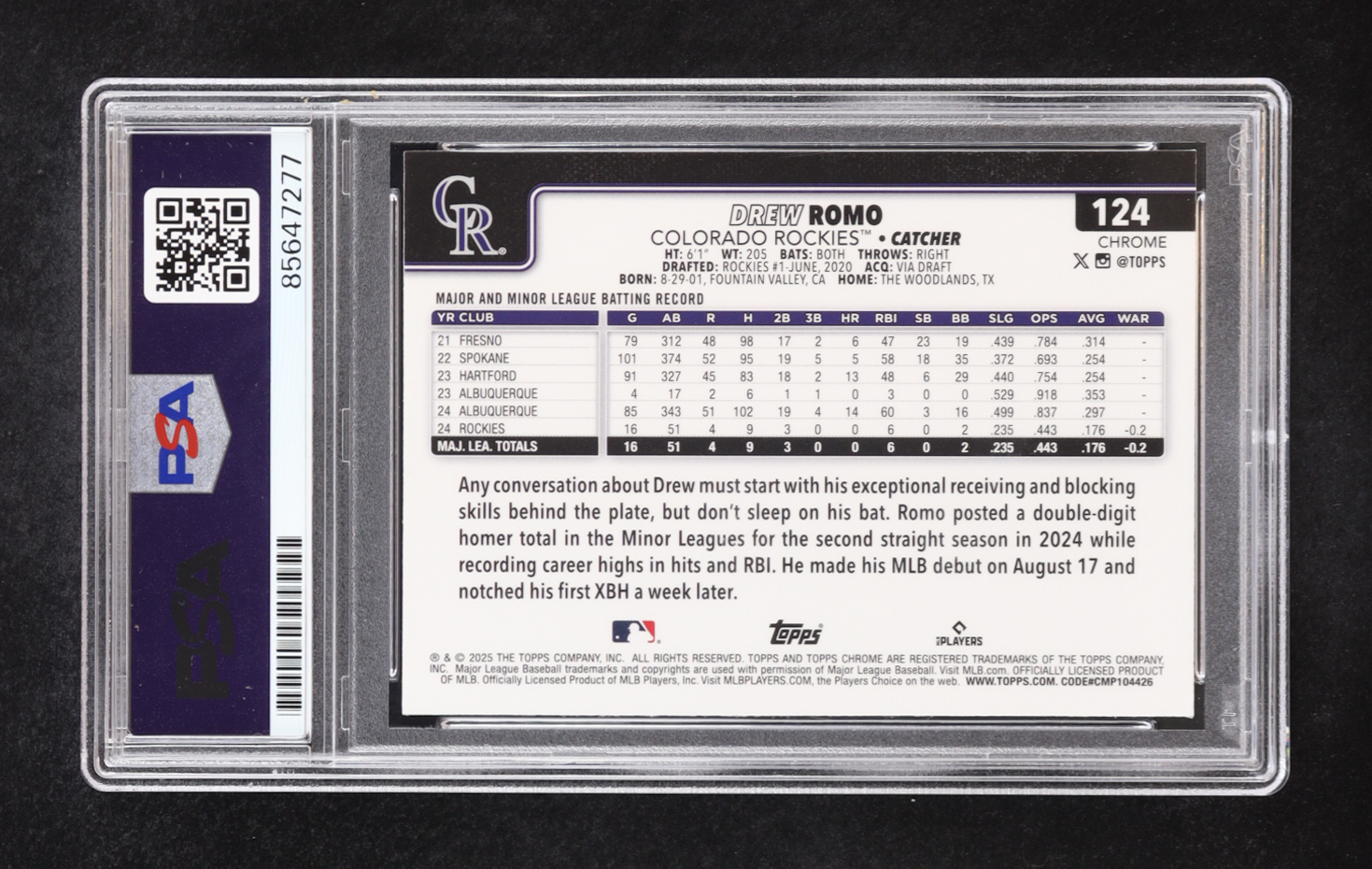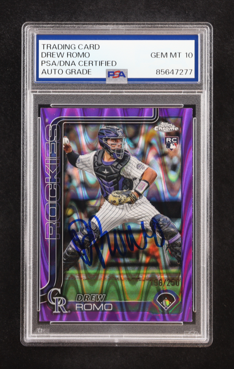 Drew Romo Signed 2025 Topps Chrome Purple RayWave Refractors #124 #196/250 RC (PSA | Auto 10)