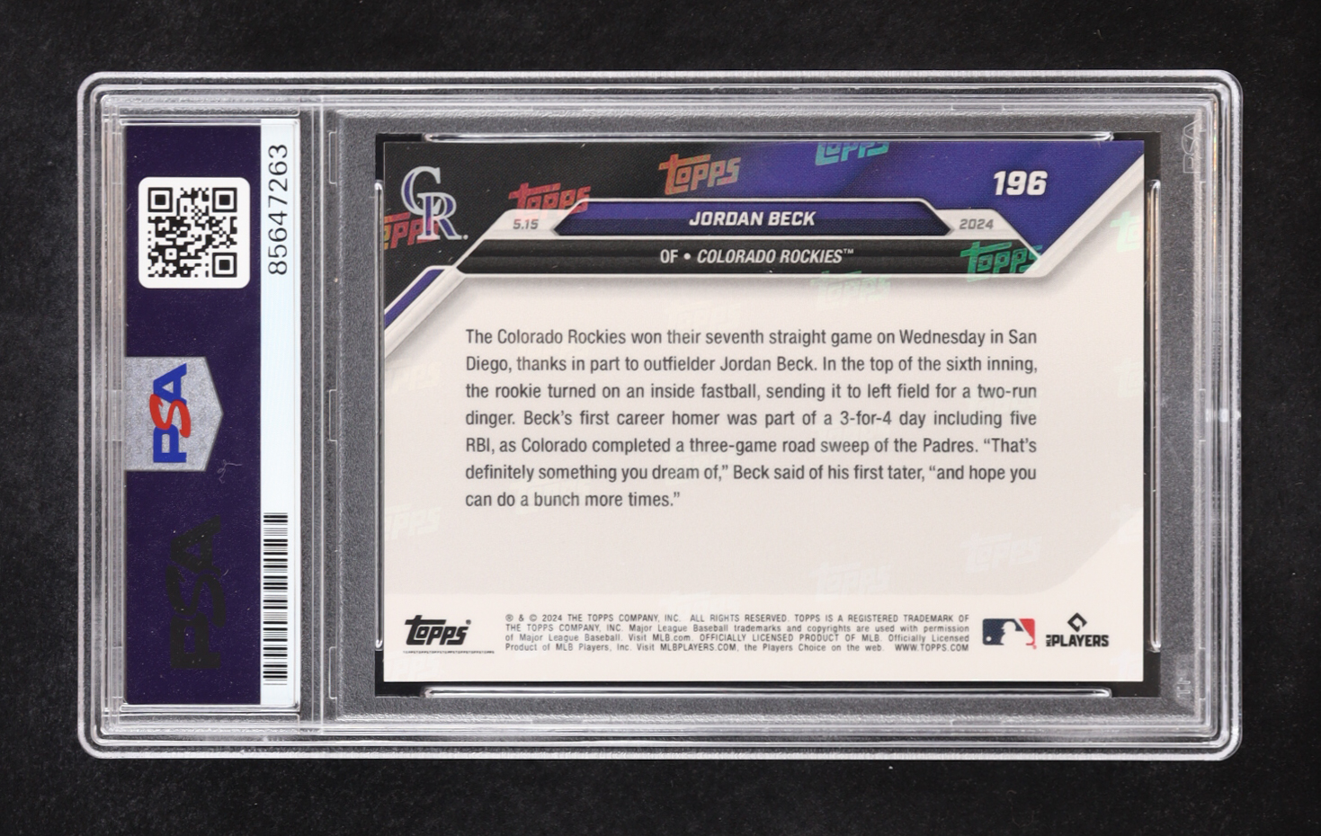Jordan Beck Signed 2024 Topps Now #196 RC (PSA | Auto 10)