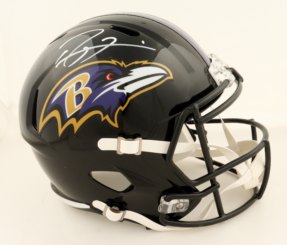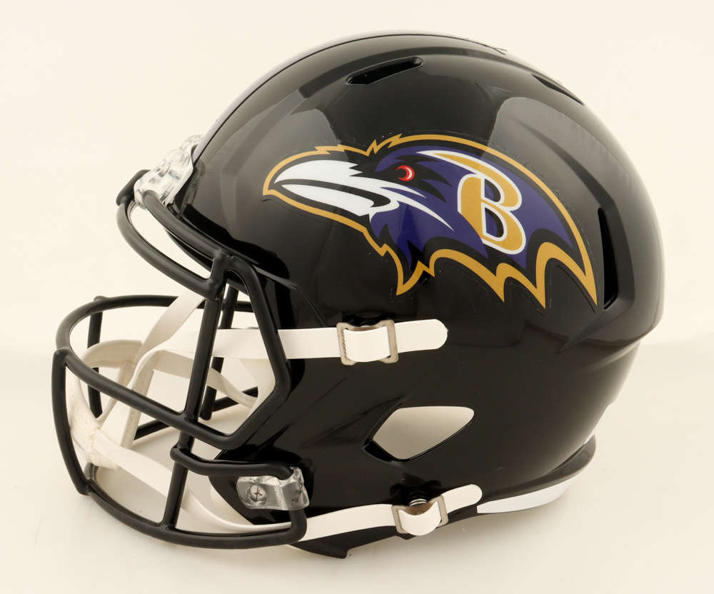 Riddell Baltimore Ravens full-size replica speed helmet. Hand-signed by Ray Lewis (HOF).