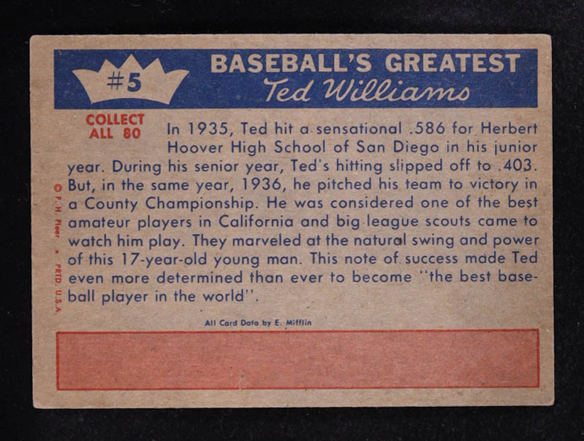 Ted Williams 1959 Fleer Ted Williams #5 Ted's Fame Spreads