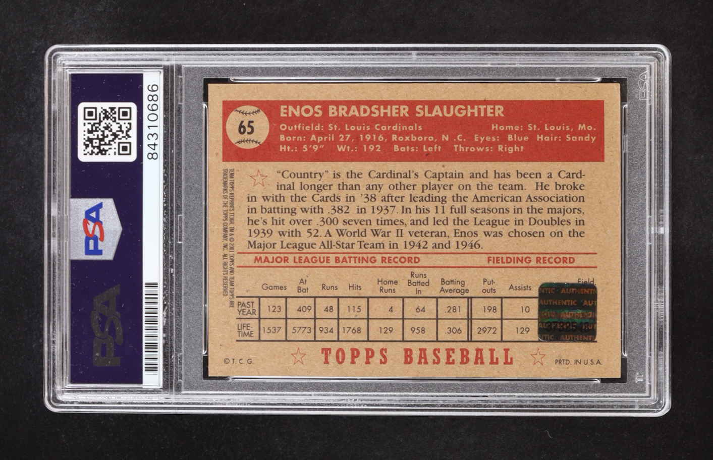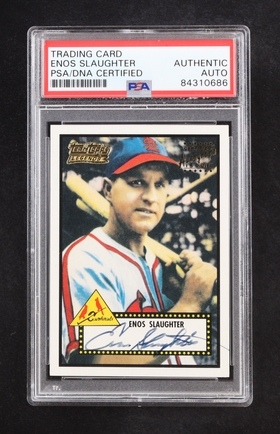 Enos Slaughter Signed 2001 Topps Legends Certified Auto #65 (PSA)