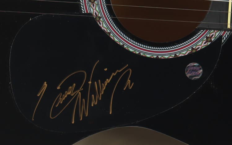 Acoustic Guitar measures approximately 38" in length and has been hand-signed on the pick-guard by Hank Williams Jr.