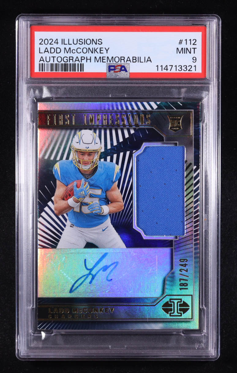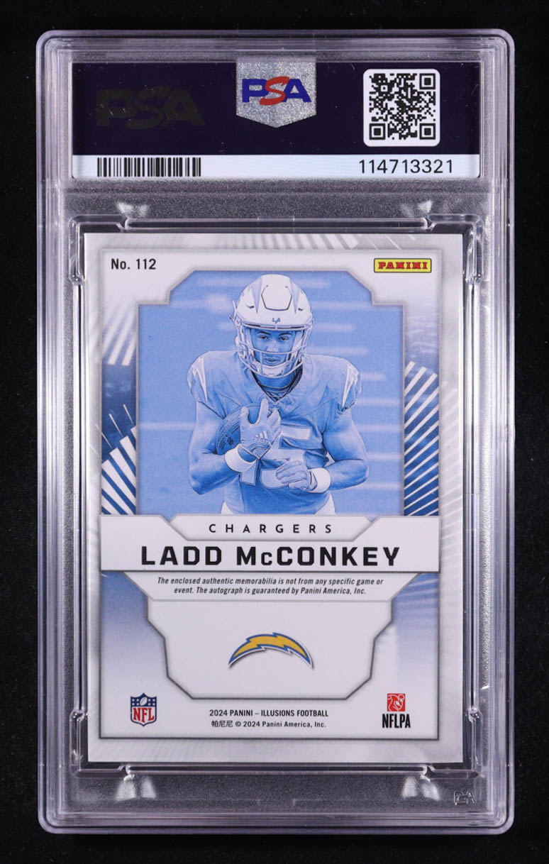 Ladd McConkey 2024 Panini Illusions #112 JSY AU RC #187/249 (PSA 9)