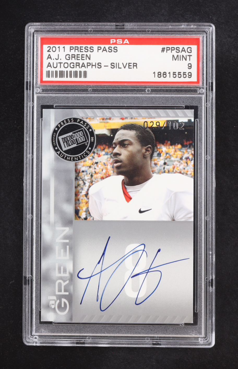 A.J. Green 2011 Press Pass Autographs Silver #PPSAG RC #029/102 (PSA 9)