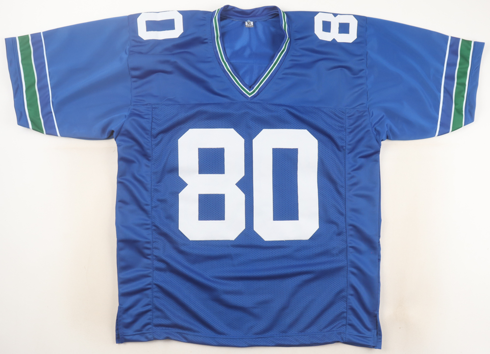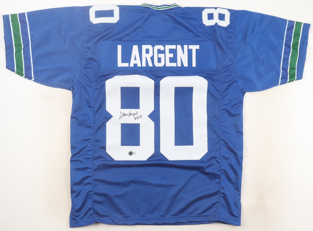 Custom jersey. Everything is sewn on, size XL. Hand-signed and inscribed by Steve Largent (HOF).