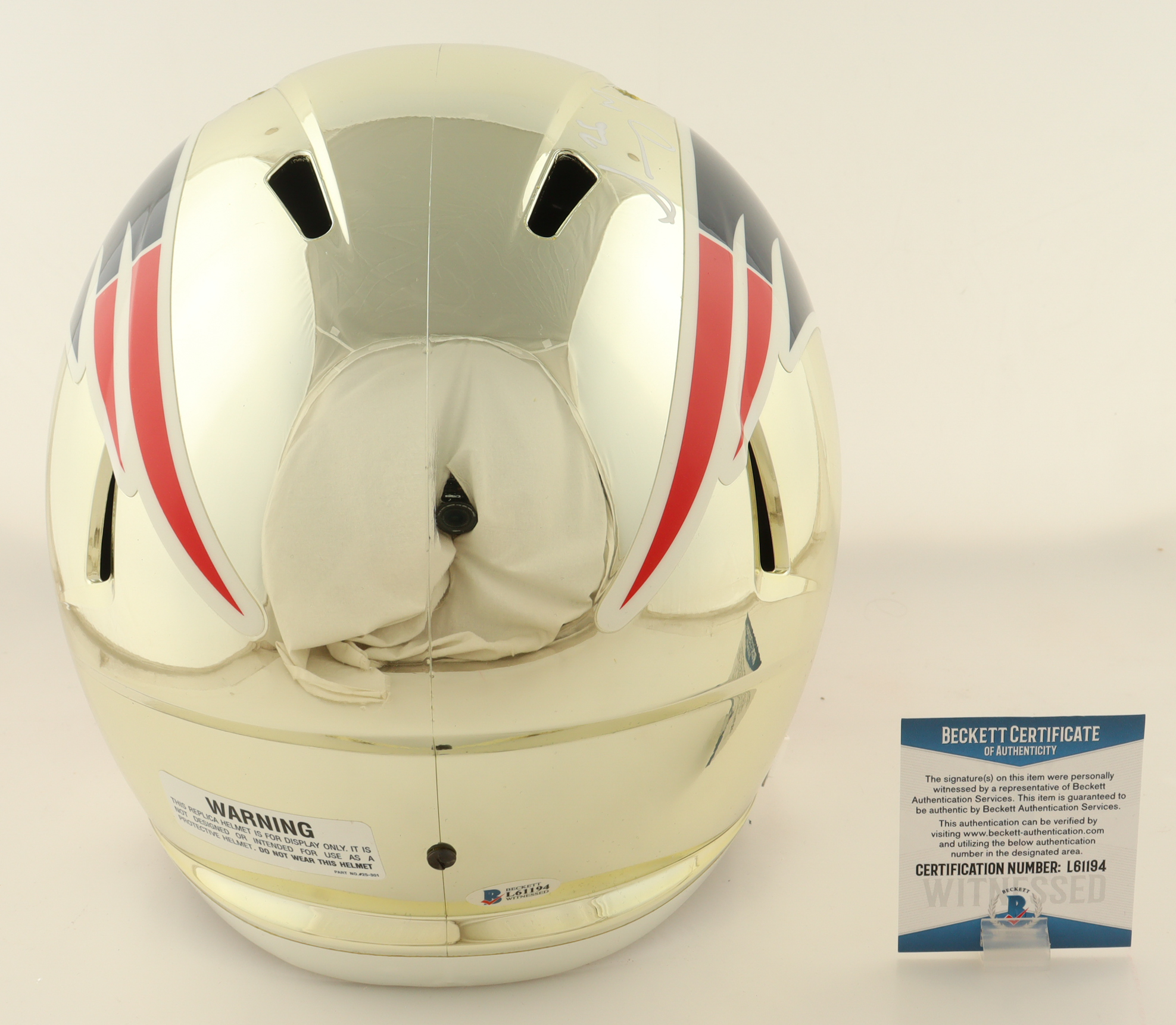 Sony Michel Signed Patriots Full-Size Chrome Speed Helmet (Beckett)