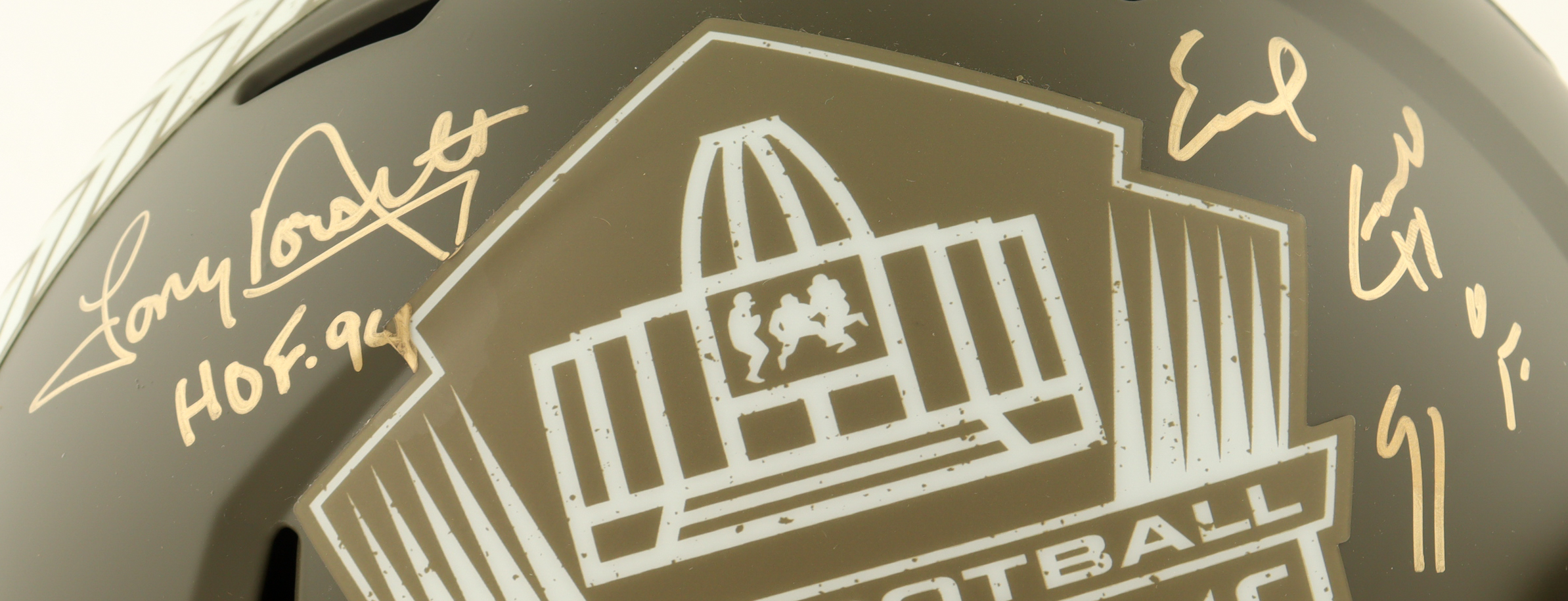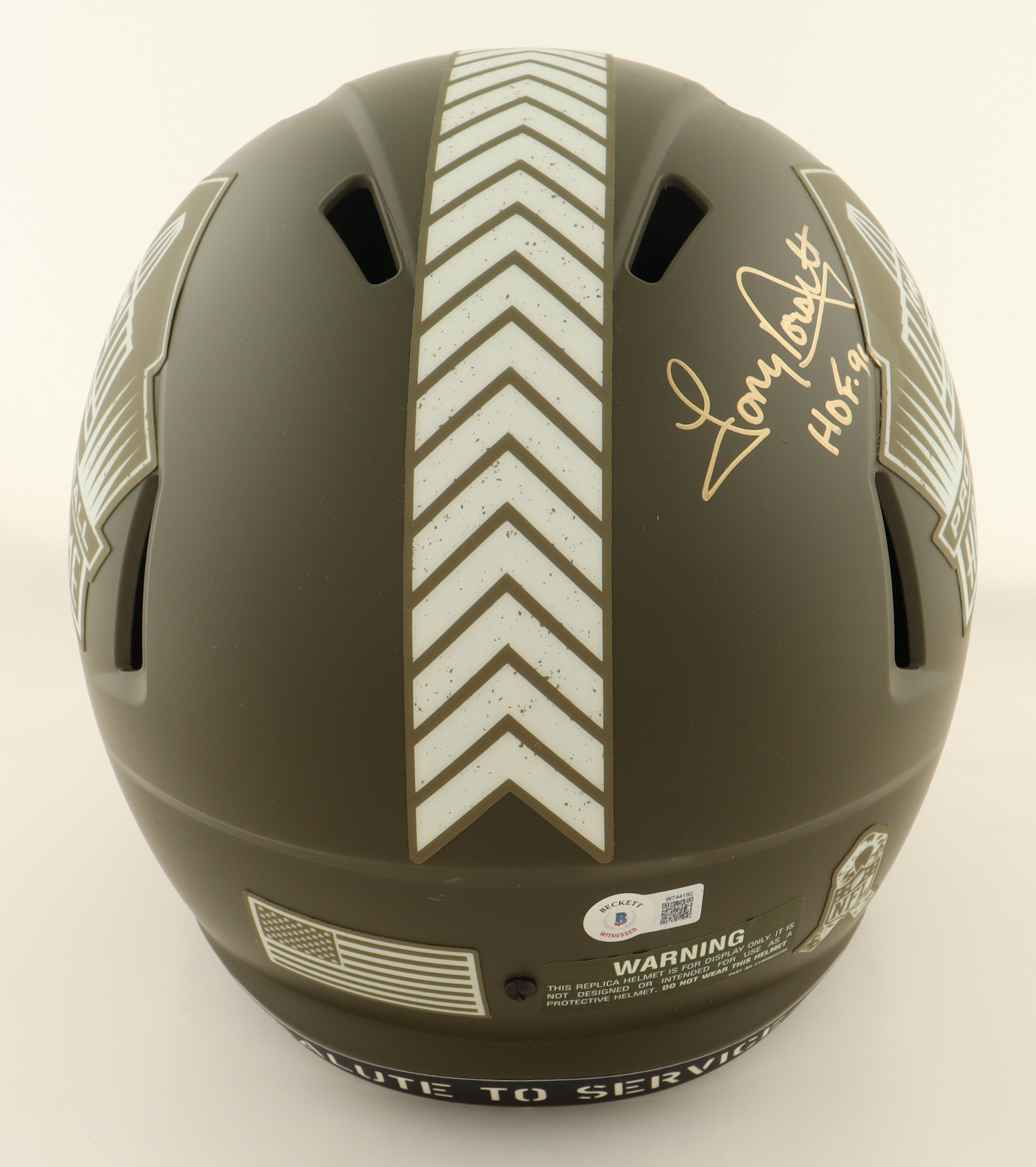 Riddell Pro Football Hall of Fame Full-Size Salute to Service Alternate Speed Replica Helmet. Hand-signed and inscribed by Tony Dorsett (Dallas Cowboys, HOF) and Earl Campbell (Houston Oilers, HOF).
