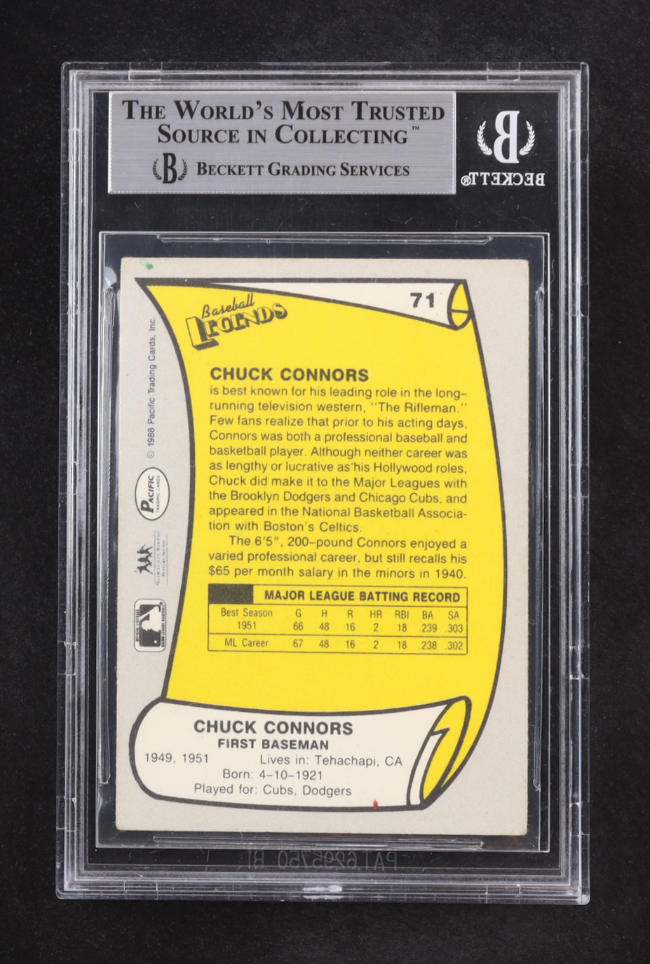Chuck Connors Signed 1988 Pacific Legends #71 (BGS)