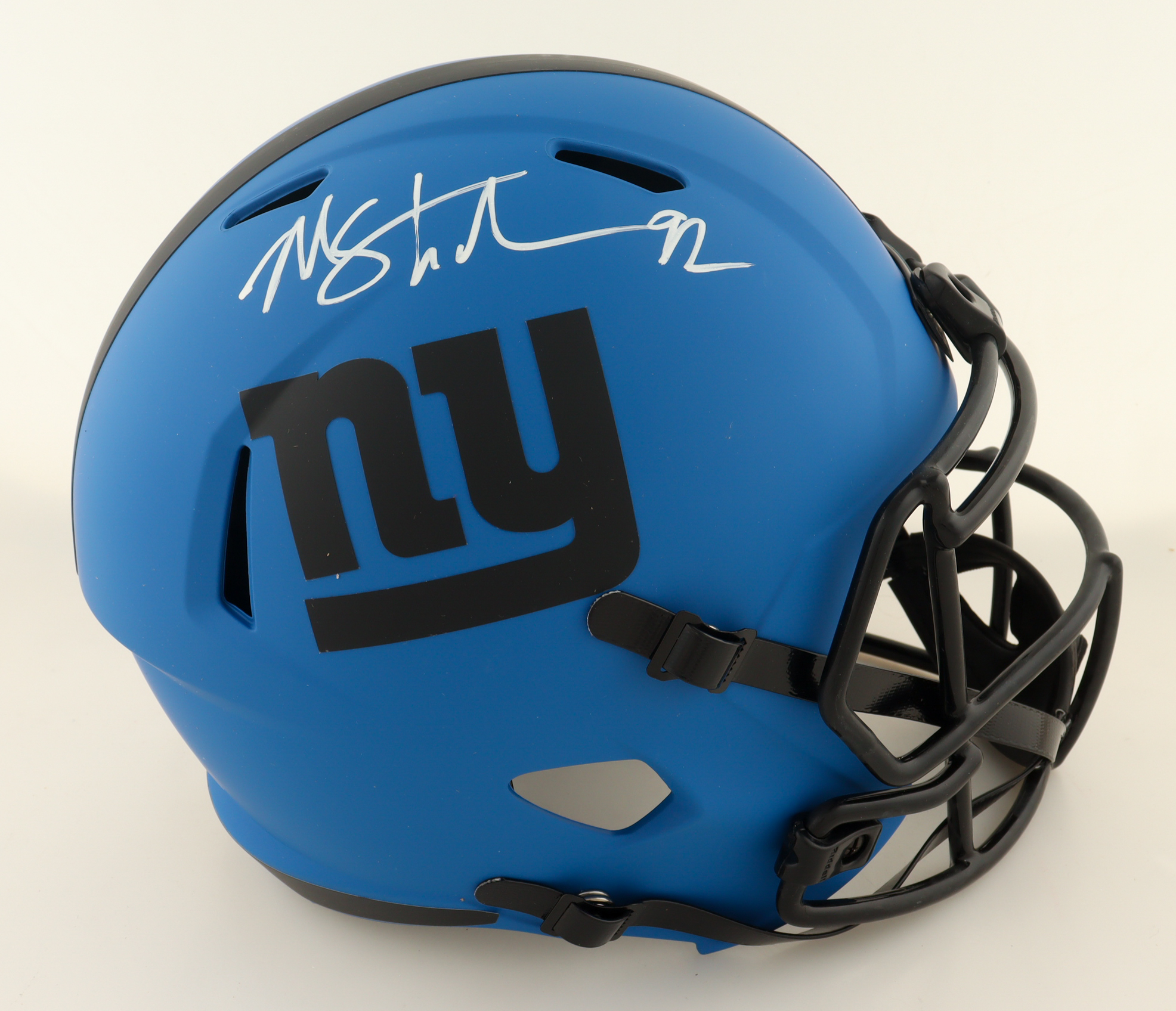 Riddell New York Giants full-size replica Rave Alternate Speed helmet. Hand-signed by Michael Strahan (HOF).