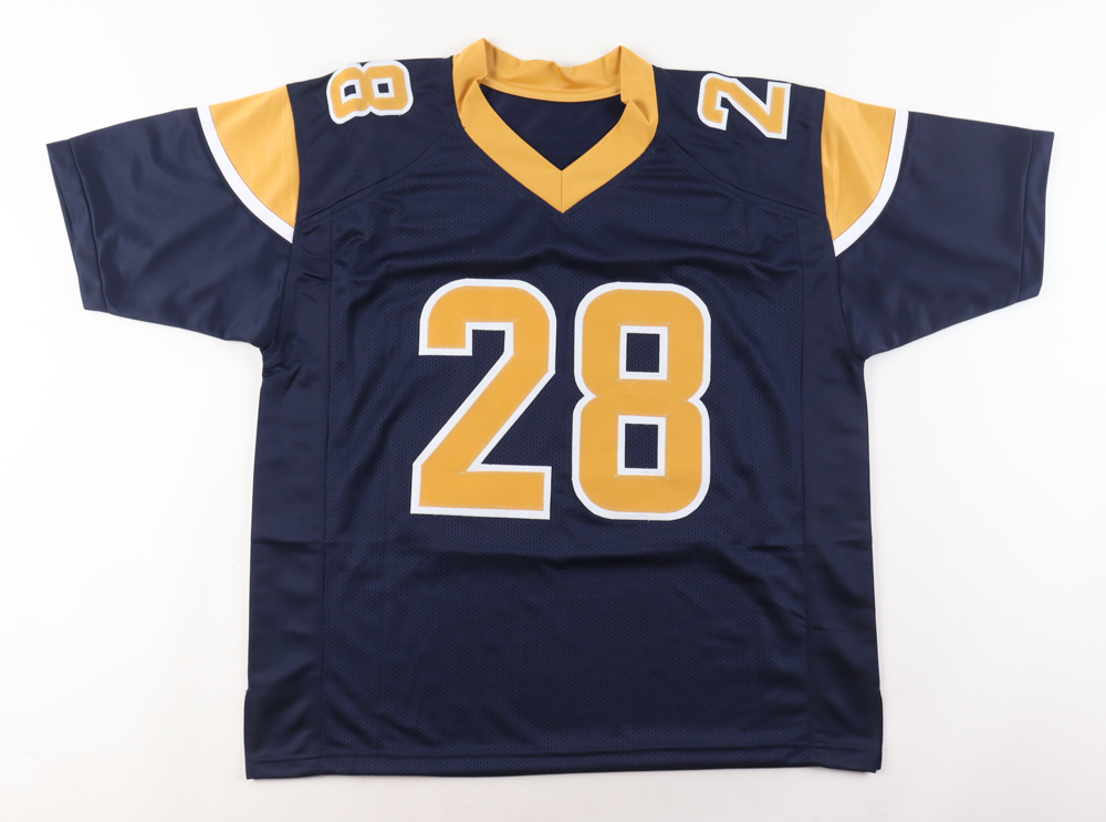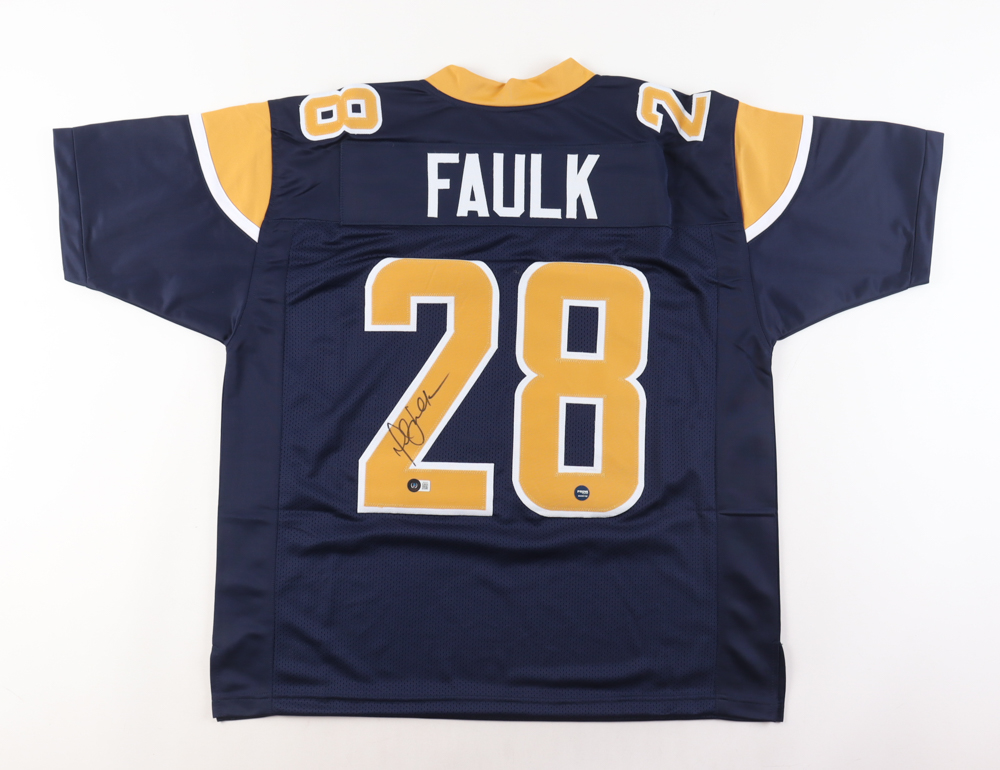 Custom jersey. Everything is sewn on, size XL. Has been hand-signed by Marshall Faulk (HOF).
