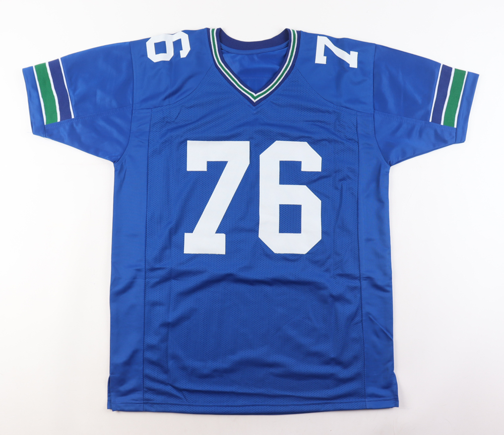 Custom jersey with everything sewn on, size XL. Hand-signed and inscribed by Steve Hutchinson (HOF).
