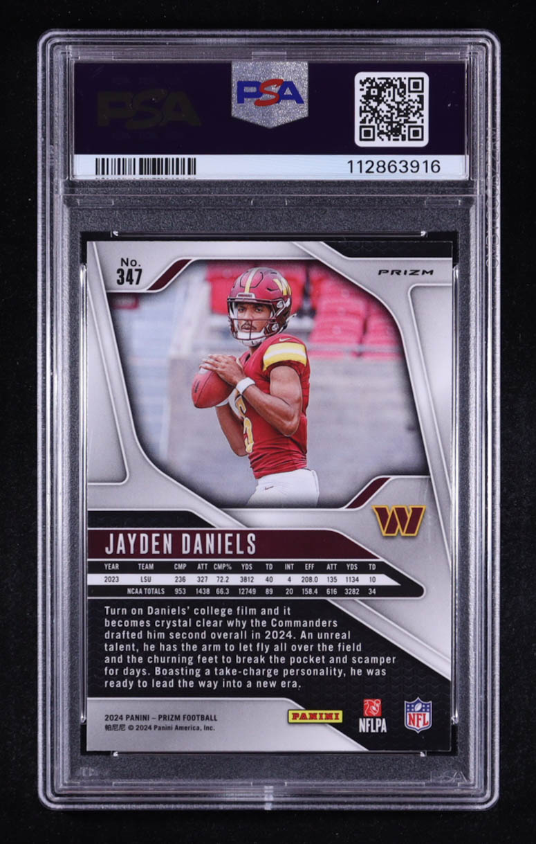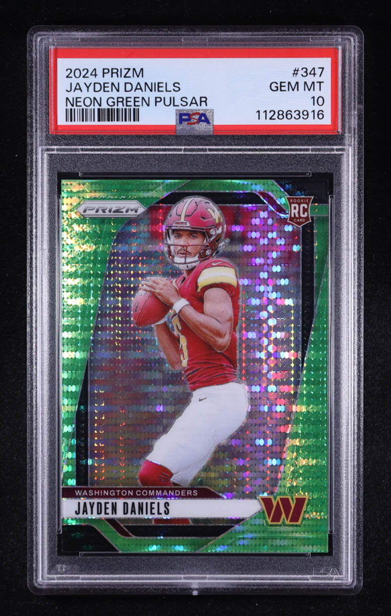 Jayden Daniels 2024 Panini Prizm Prizms Neon Green Pulsar #347 RC (PSA 10)