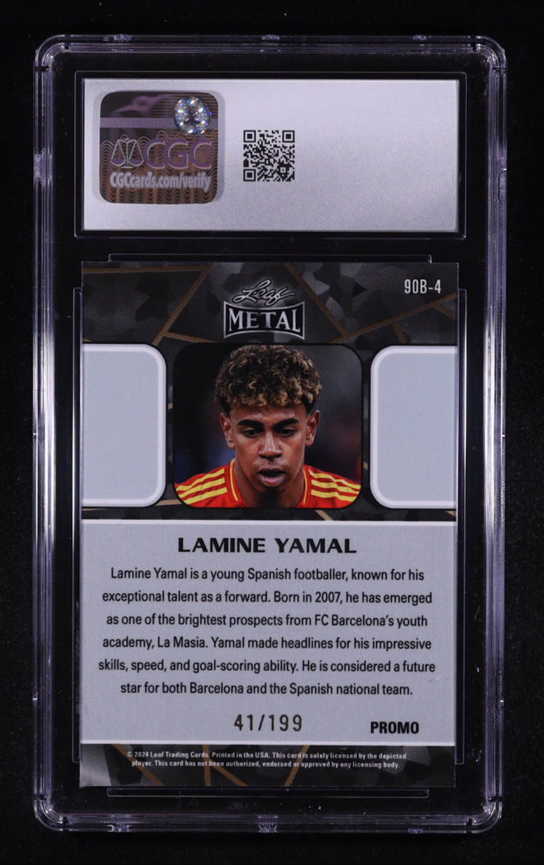 Lamine Yamal 2024 Leaf Metal Collective Promos '90 Leaf Purple Shimmer #90B-4 RC #41/199 (CGC 10)