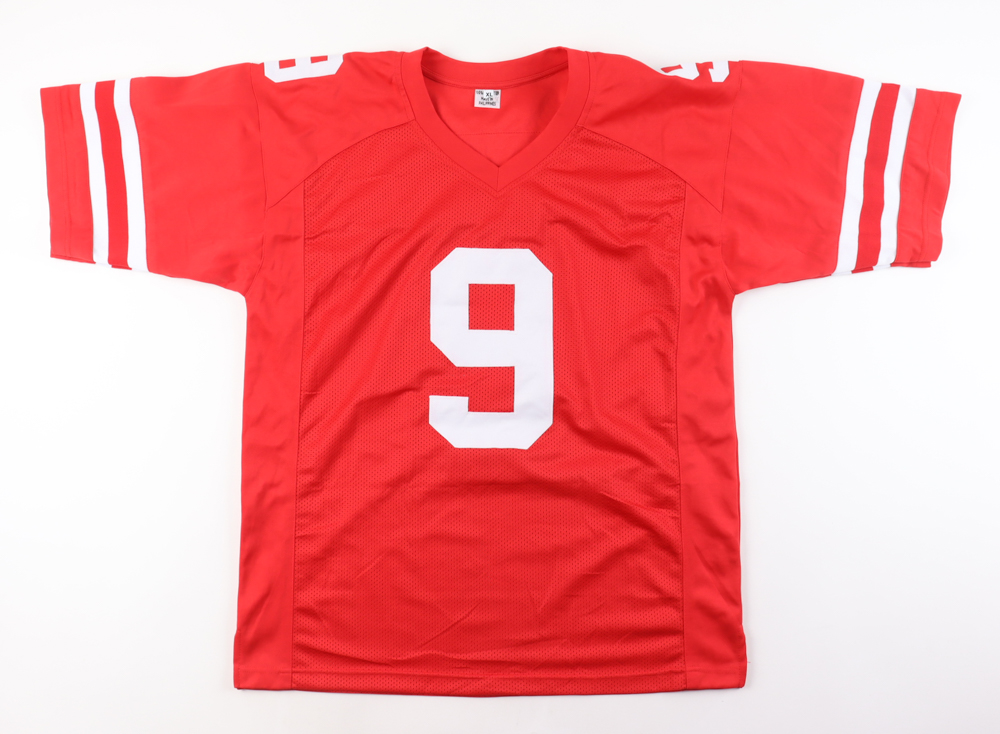 Custom jersey. Everything sewn on, size XL. Hand-signed by Robbie Gould. Please note, there are red stains on the front and reverse numbers.