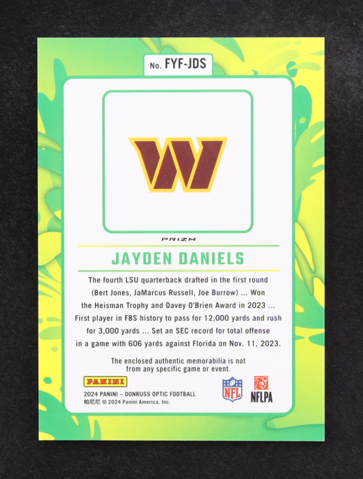 Jayden Daniels 2024 Donruss Optic First Year Fresh Jerseys Blue Hyper #17 RC