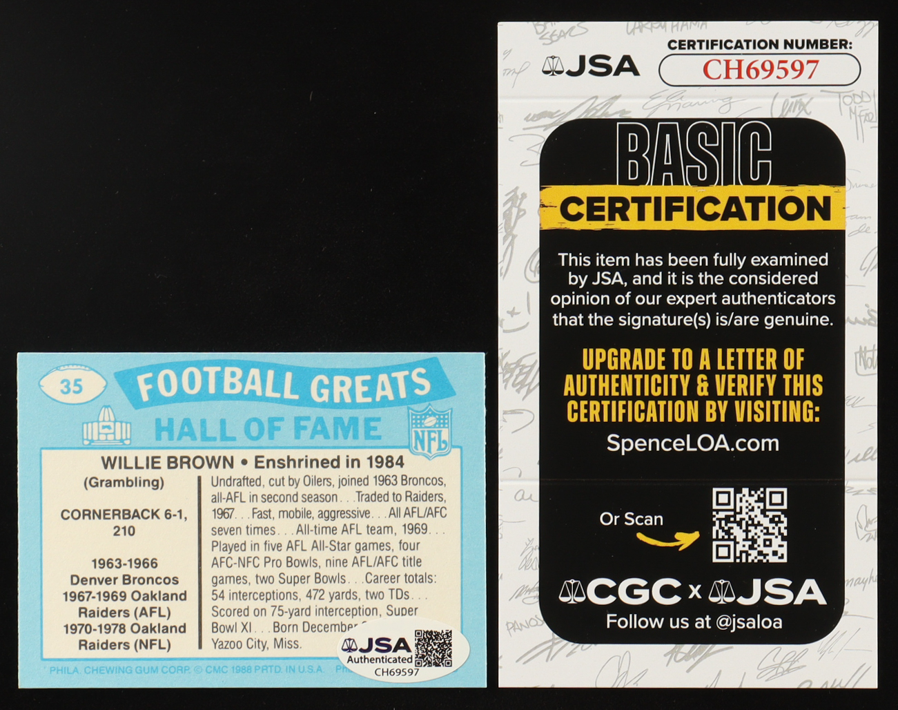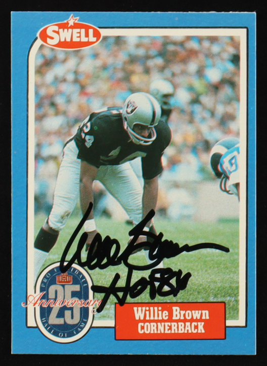Card has been hand-signed and inscribed by Willie Brown (Oakland Raiders, HOF). Please see photos for details regarding the condition of the card.