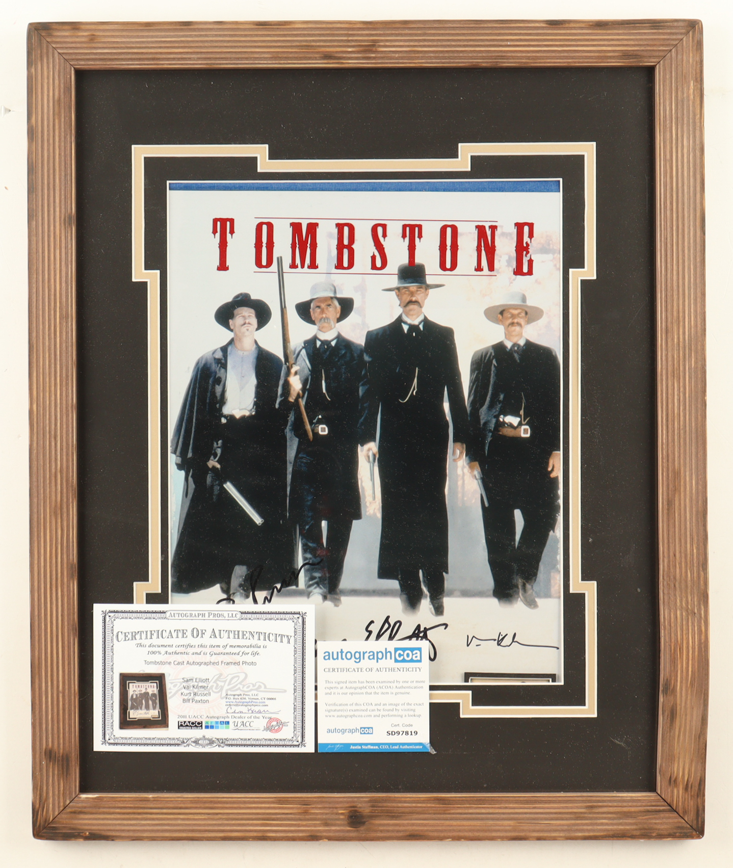 "Tombstone" Custom Framed Photo Display Cast-Signed By (4) With Sam Elliot, Val Kilmer, Kurt Russell & Bill Paxton (AutographCOA & AutographPros)