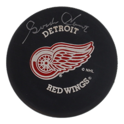 Detroit Red Wings Logo Hockey Puck. Hand-signed by Gordie Howe (D. 2016, HOF).