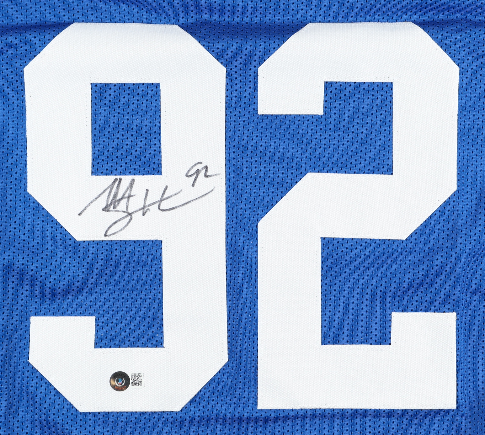 Custom jersey, everything is sewn on, size XL. Hand-signed by Michael Strahan (HOF).