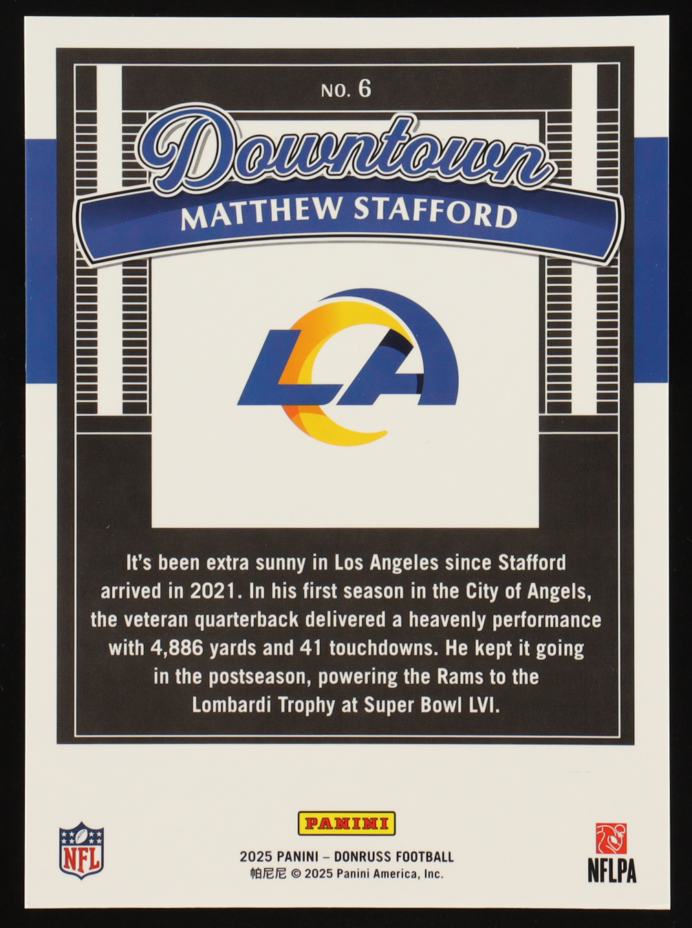 Matthew Stafford 2025 Panini Donruss Football Oversized Downtown Jumbo #6