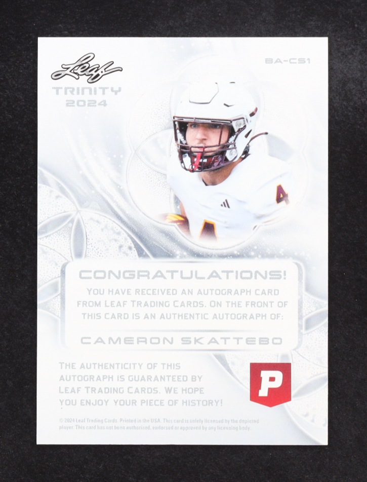 Cameron Skattebo 2024 Leaf Trinity Pristine Auction Autograph #BACS1 RC