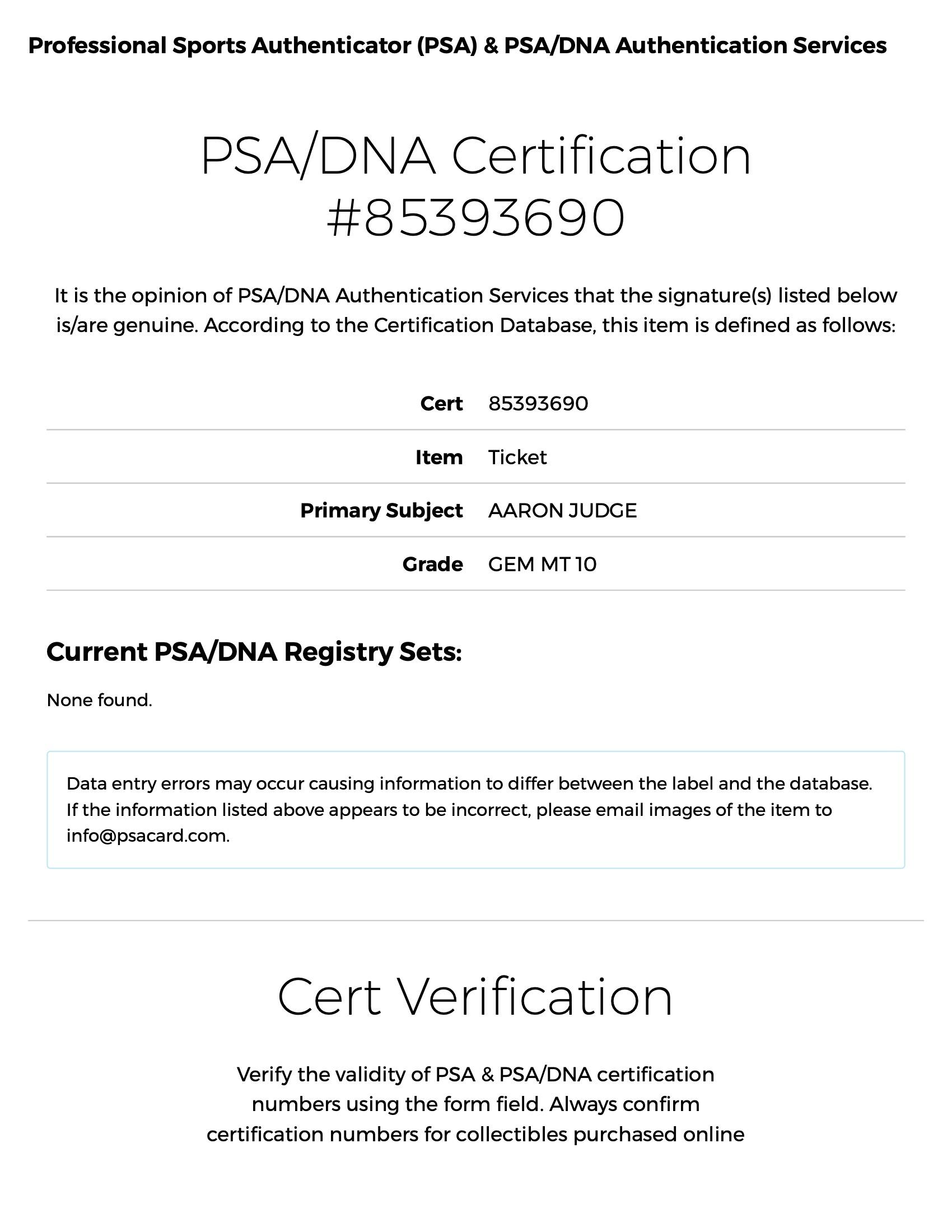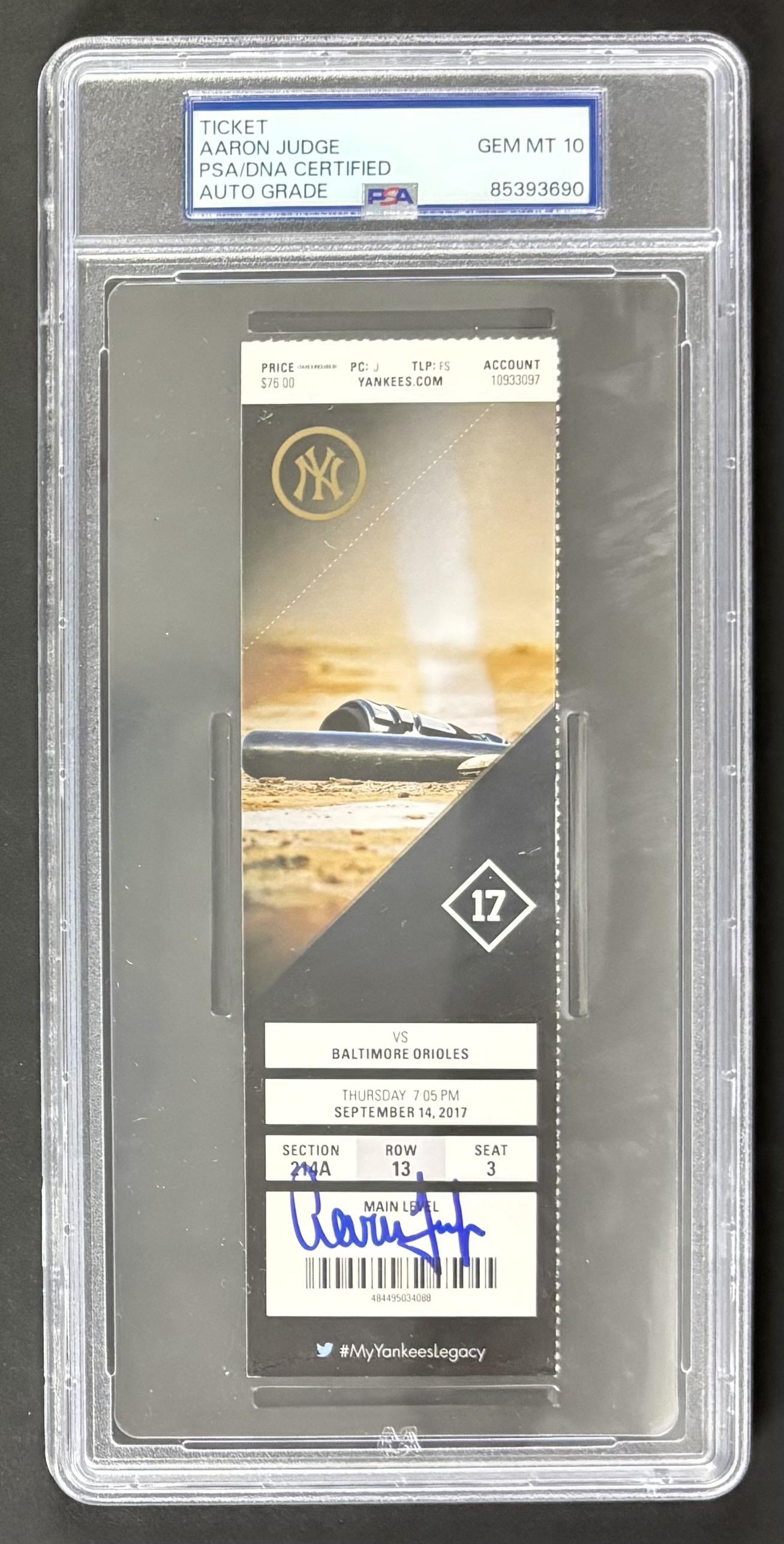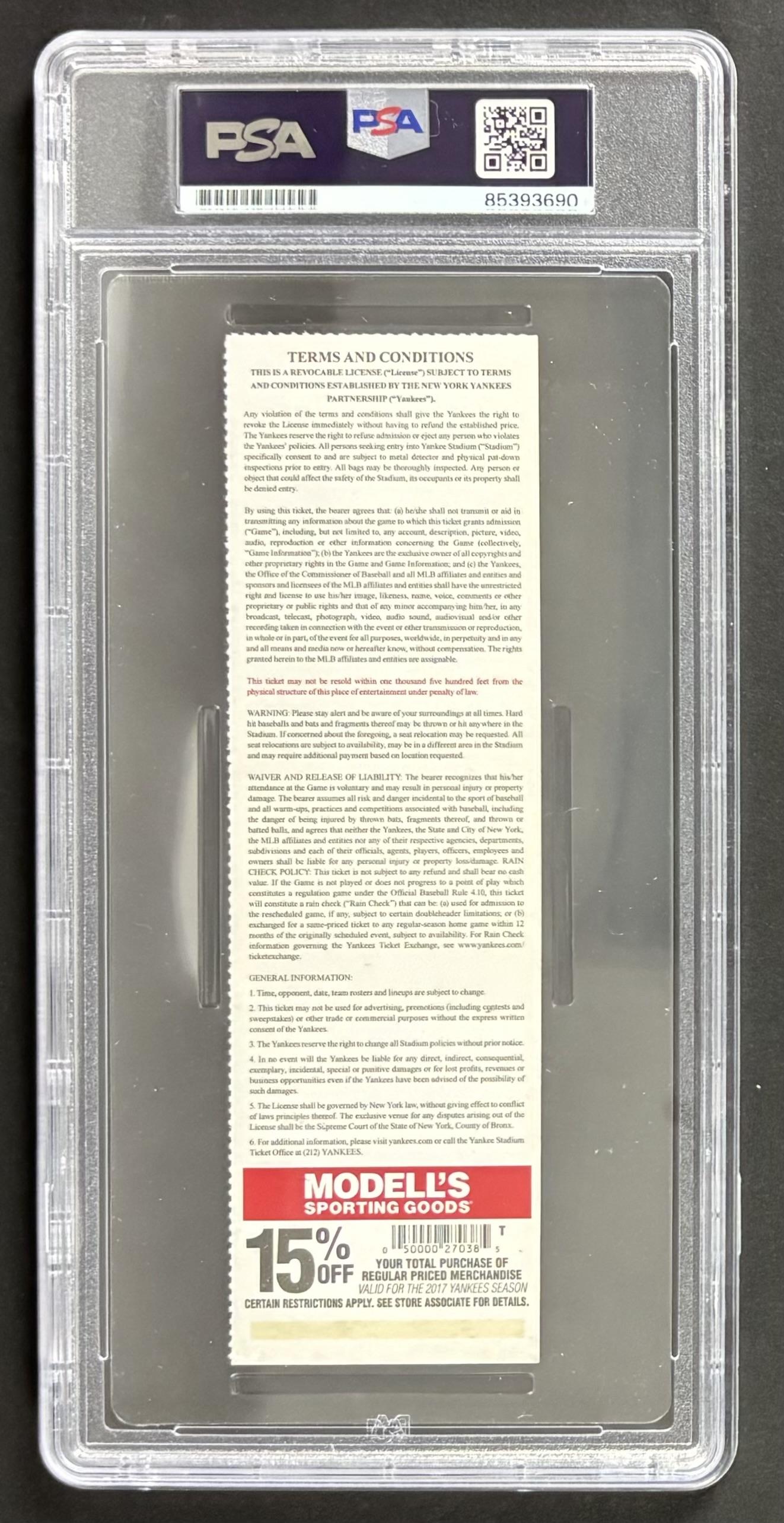 Aaron Judge Signed 2017 Rookie Year Yankee Stadium Ticket (PSA | Auto 10)