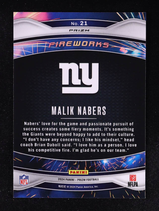 Malik Nabers 2024 Panini Prizm Fireworks Prizms Green #21 RC