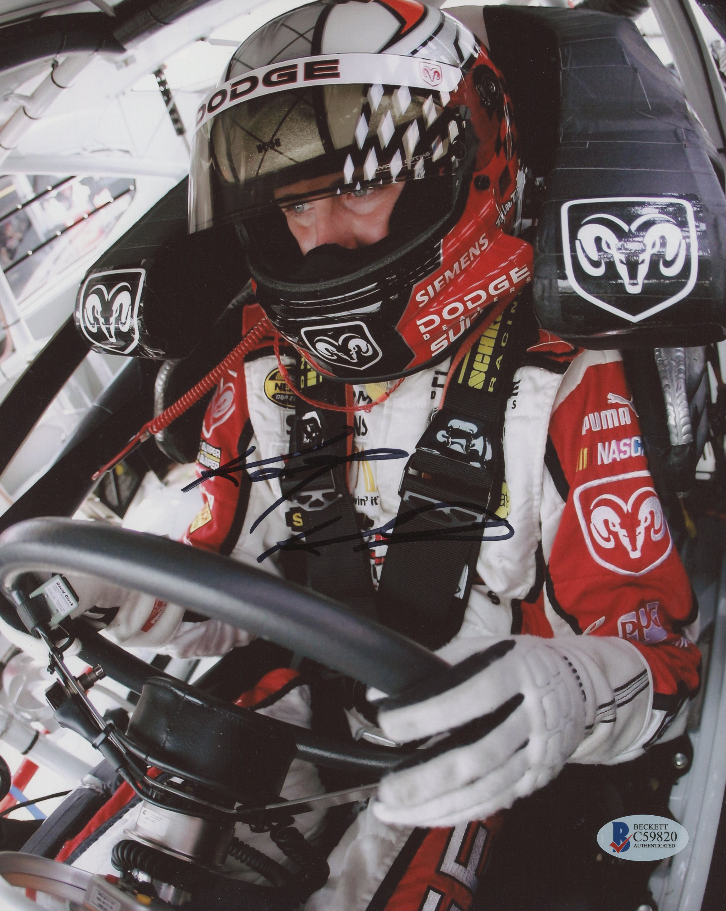 Photo measures 8" x 10" and has been hand-signed in black felt-tip pen by Kasey Kahne.