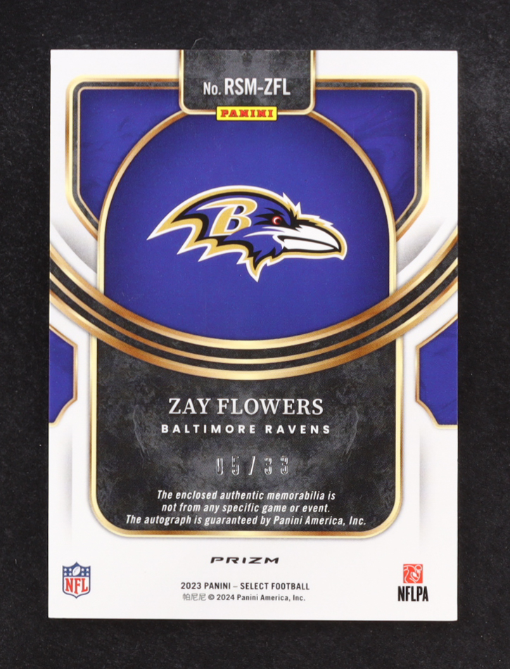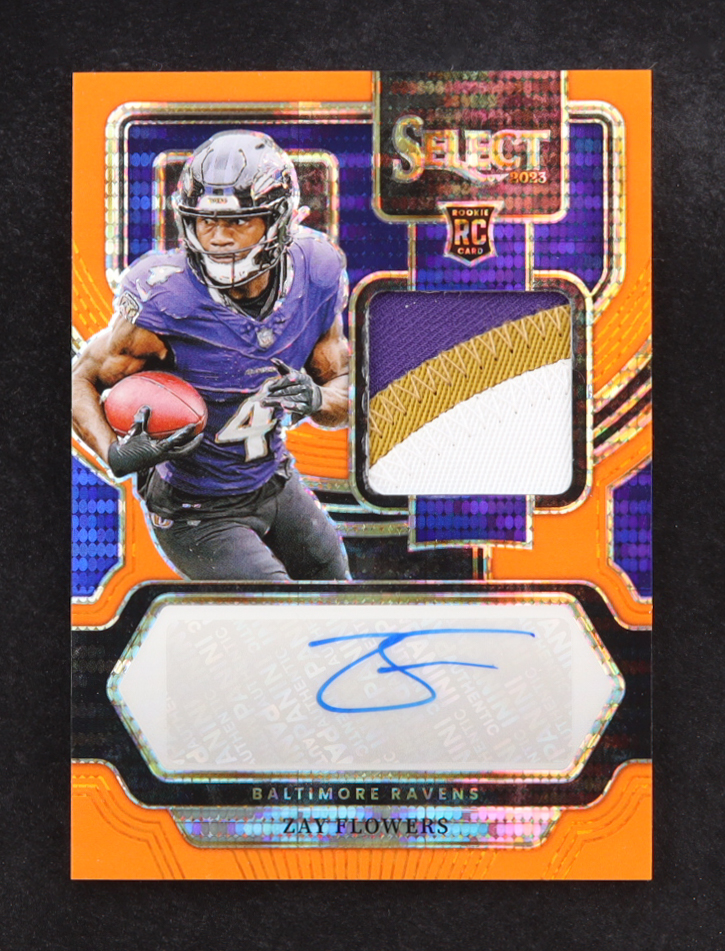 Zay Flowers 2023 Select Jumbo Rookie Signature Swatches Prizm Neon Orange Pulsar #9 #05/33 RC