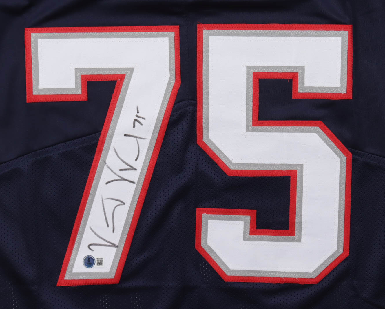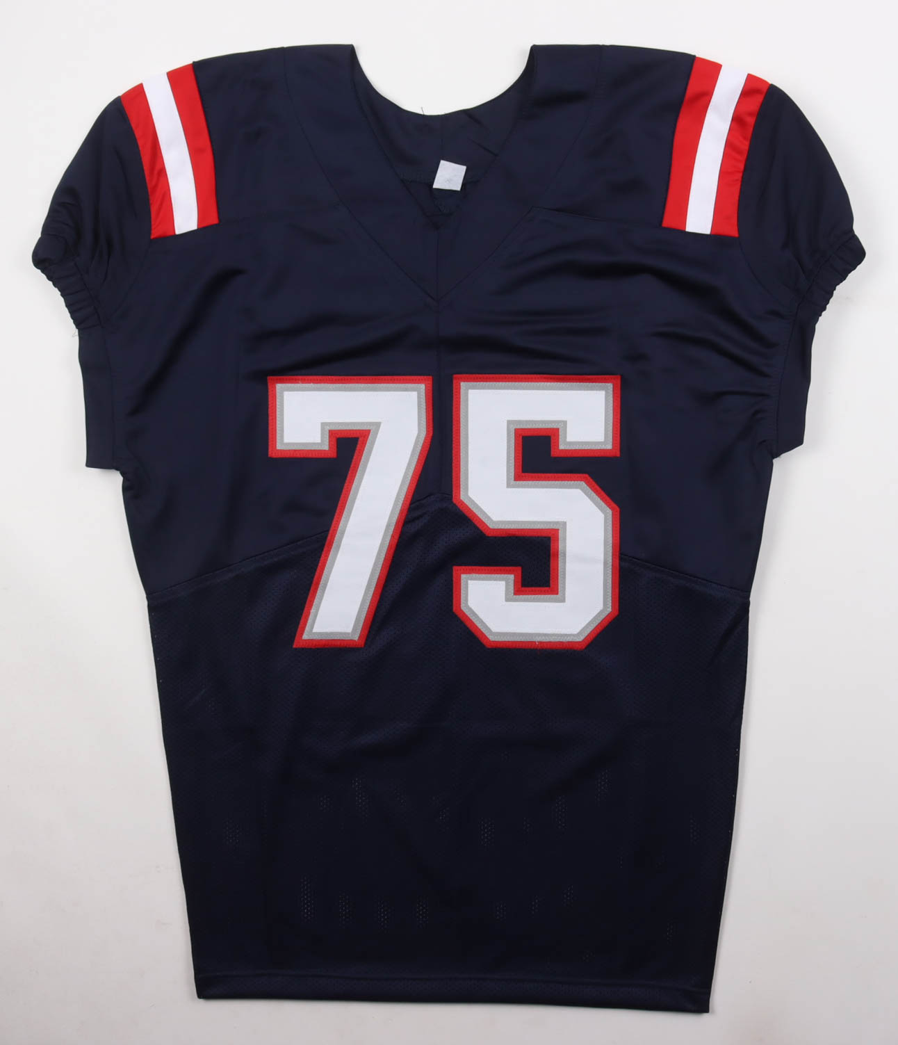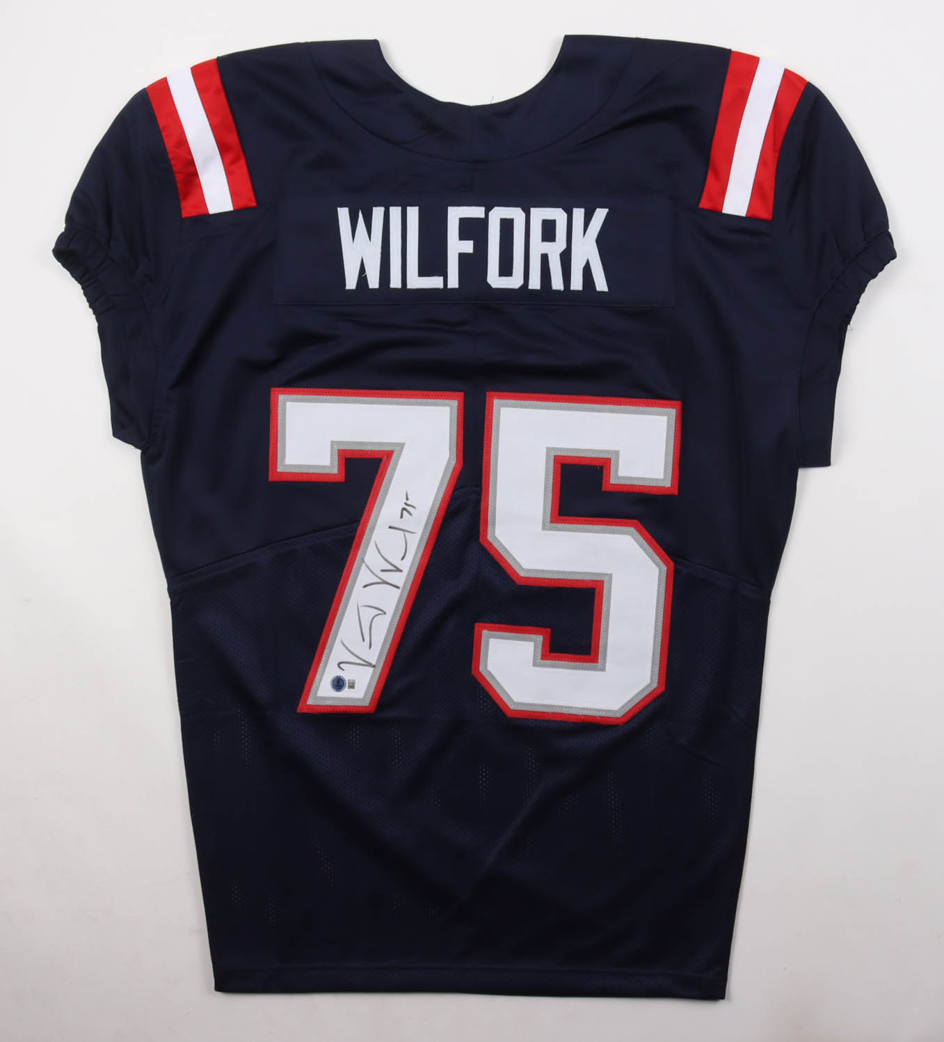 Custom jersey with everything sewn on, size XL. Hand-signed by Vince Wilfork.