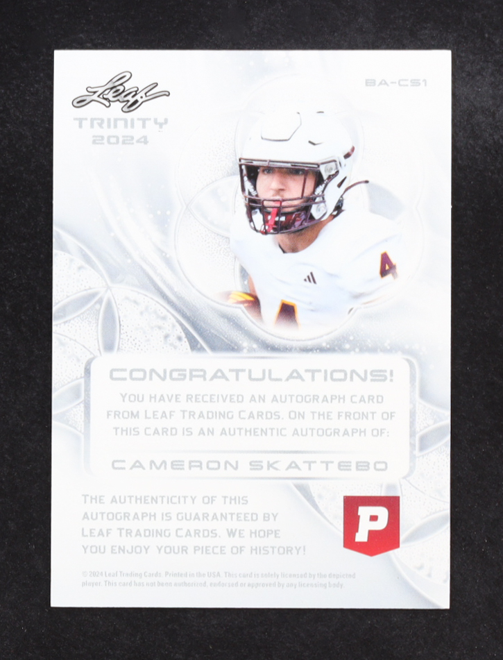 Cameron Skattebo 2024 Leaf Trinity Pristine Auction Autograph #BACS1 RC