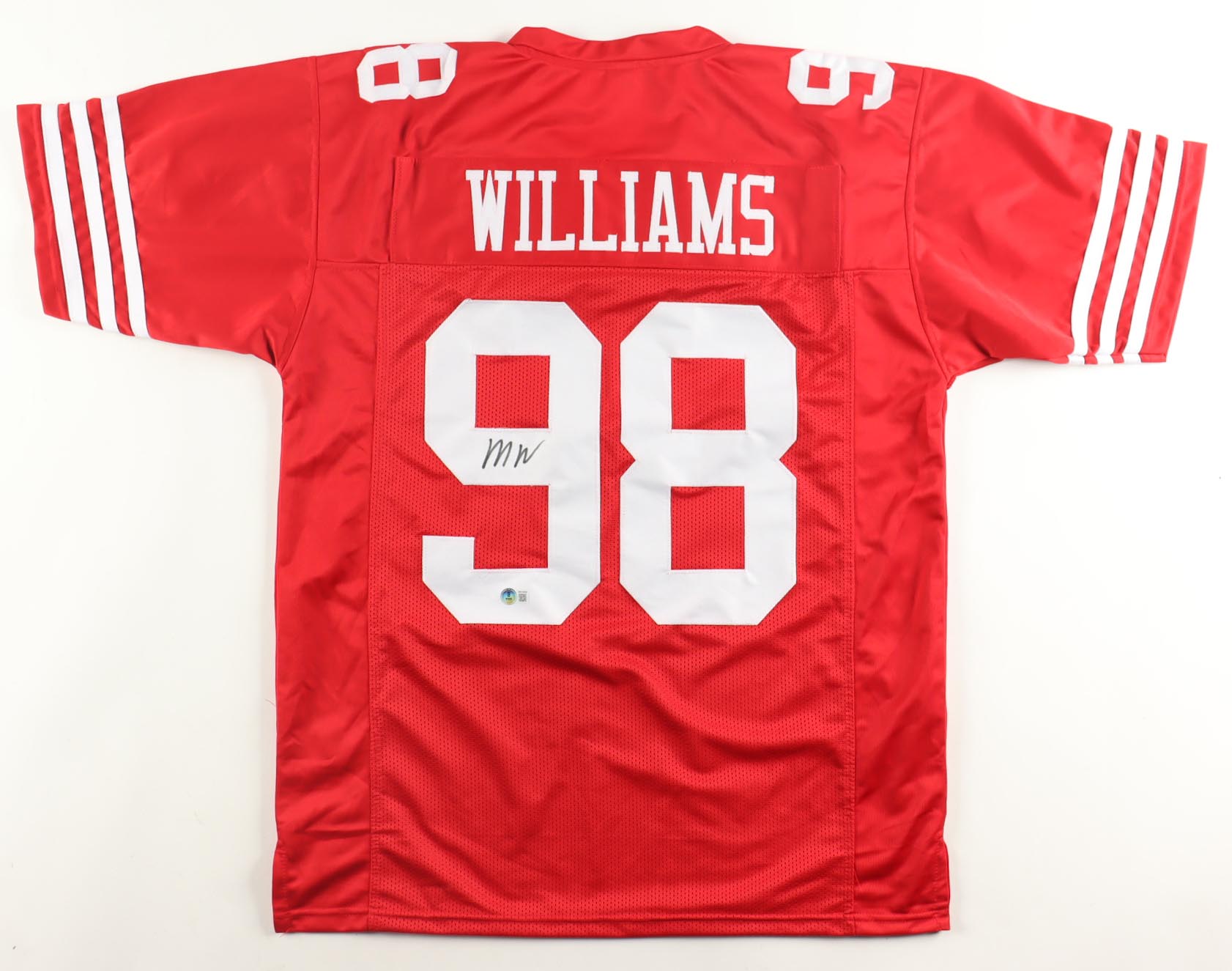 Custom jersey, everything is sewn on, size XL. Hand-signed by Mykel Williams.