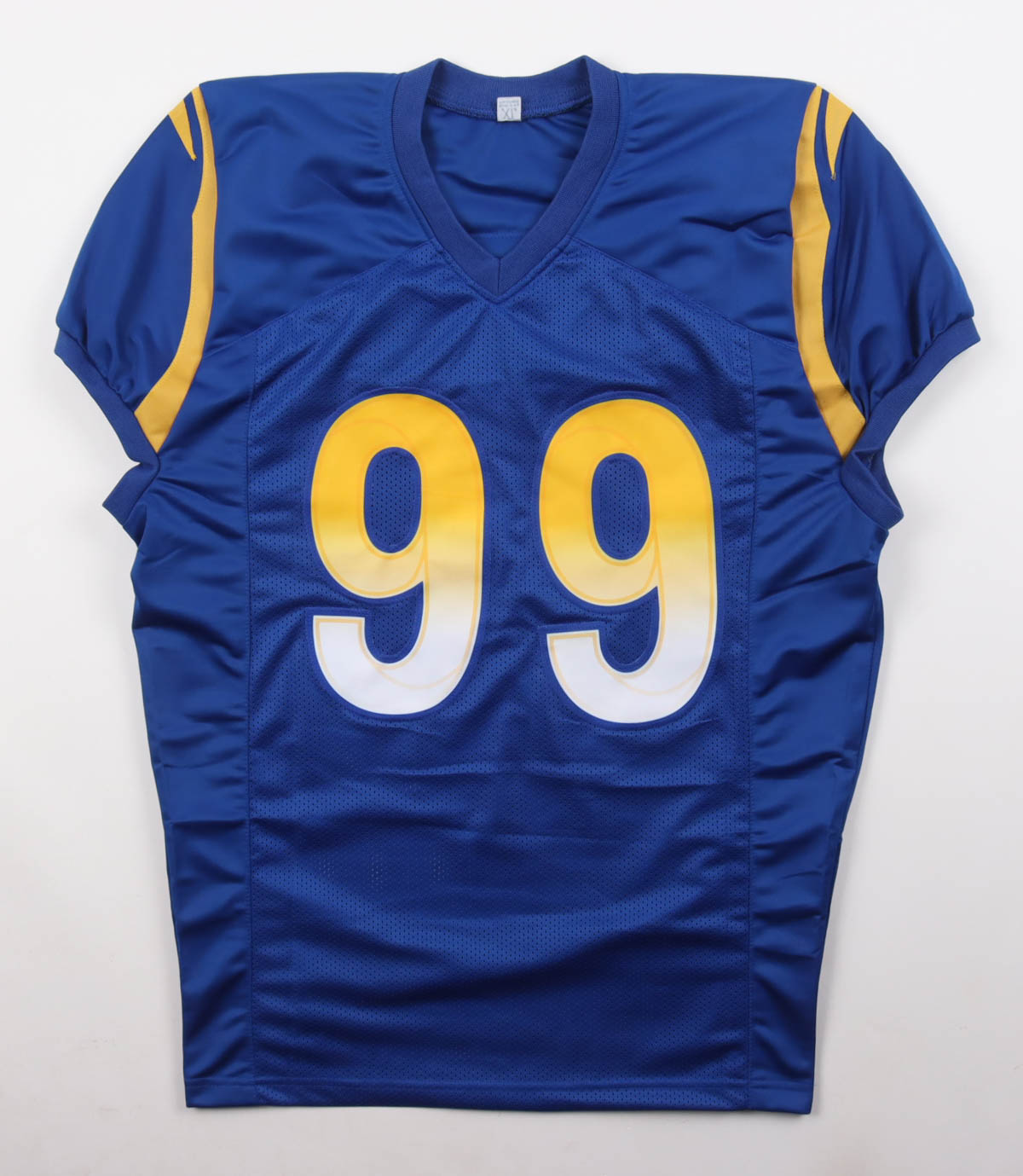 Custom jersey with everything sewn on, size XL. Hand-signed by Aaron Donald.
